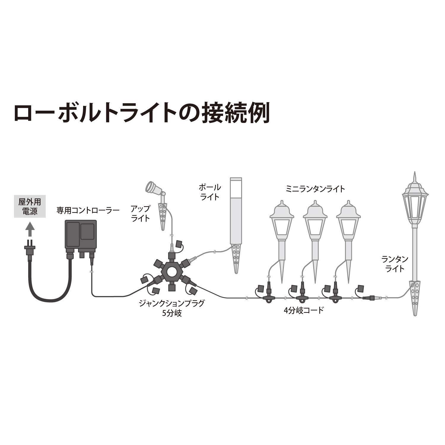 タカショーローボルトガーデンライトシリーズにつき消費電力24.5Wまで連結可能です。。