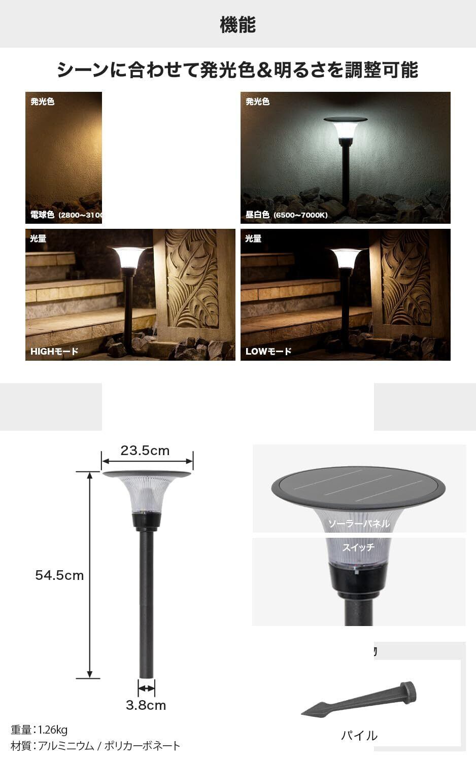 HAPPYJOINT ルナシア カリーナ ソーラーライト 屋外 防水 IP55 カラー切替 電球色 昼白色 調光 高さ54.5cm アルミ製
