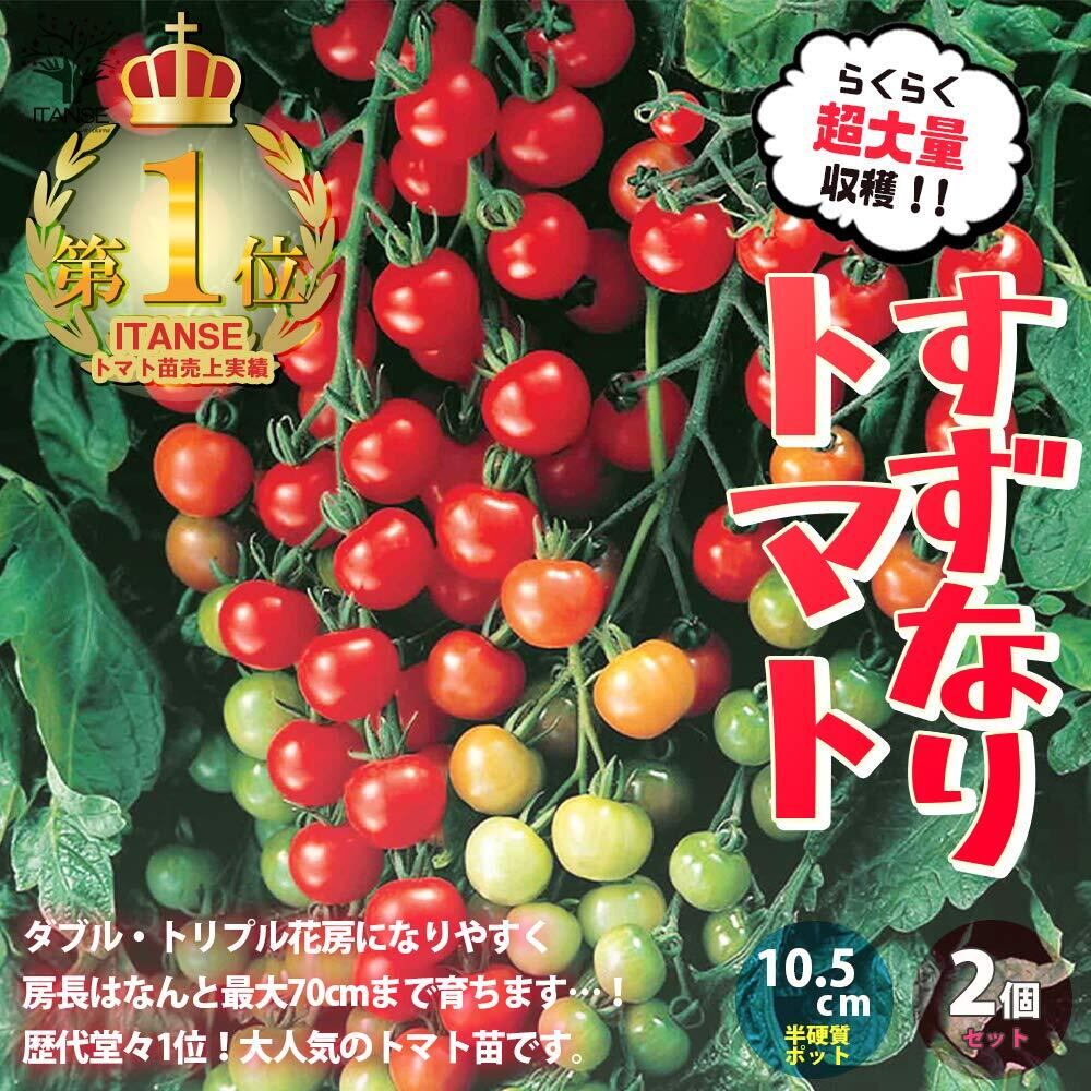 【特価商品】ITANSE ミニトマト苗 実割れしにくい すずなりトマト 野菜苗 9cmポット自根苗 2個セット 実がとれ酸味と甘さのバランスが良い美味しいミニトマト品種 房長70~80cmにもなり ダブル・トリプル花房も多く発生する 糖度7度は安定 | bobo
