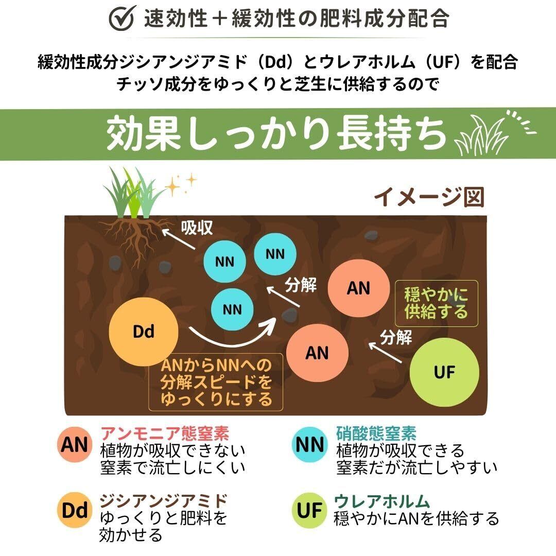 速効性+緩効性の肥料成分で、効果しっかり長持ち※緩効性成分ジシアンジアミド(Dd)とウレアホルム(UF)を配合