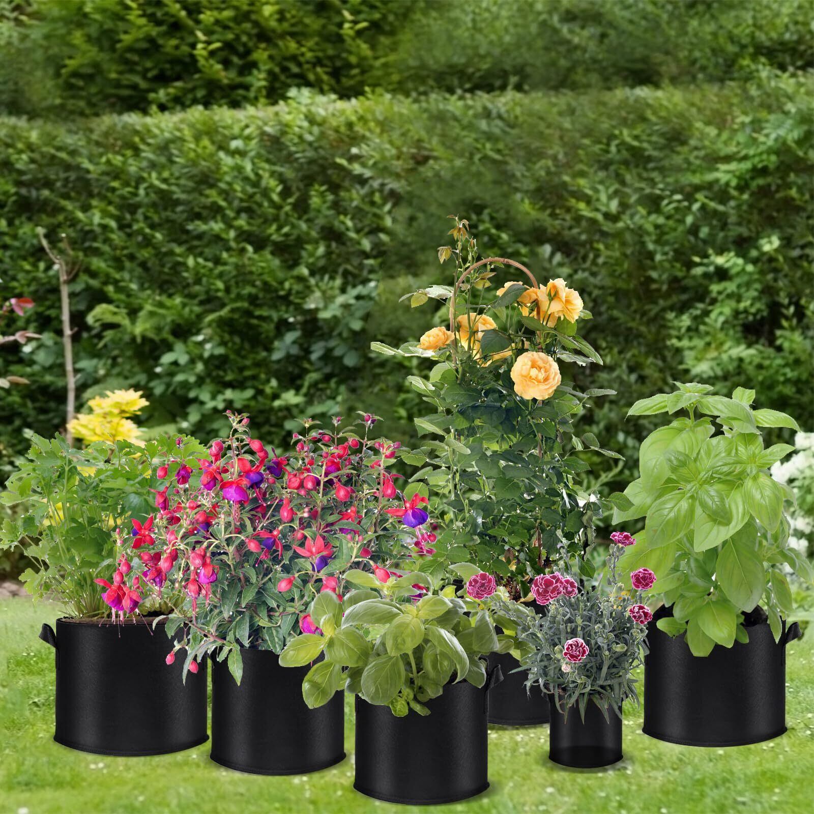 【素材】環境に優しい不織布、5pcs、10ガロン(36 L)、サイズ:高30 X 直径40cm、重量:約176g *5 カラー:ブラック。