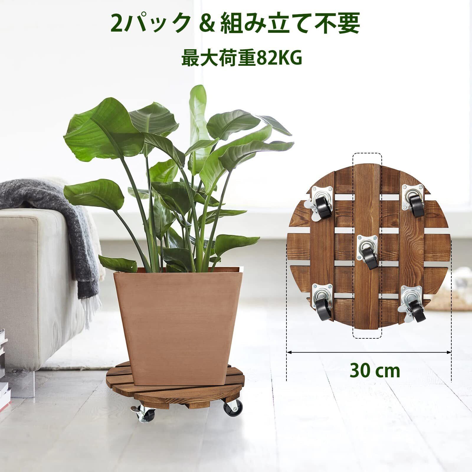 植木鉢台Yangbaga2個セット植木鉢 受け皿 可動式 丸い木の植木鉢トロリー 360°ロック可能なキャスター フラワーポット、ジューシーポット用 庭用(30*8cm)
