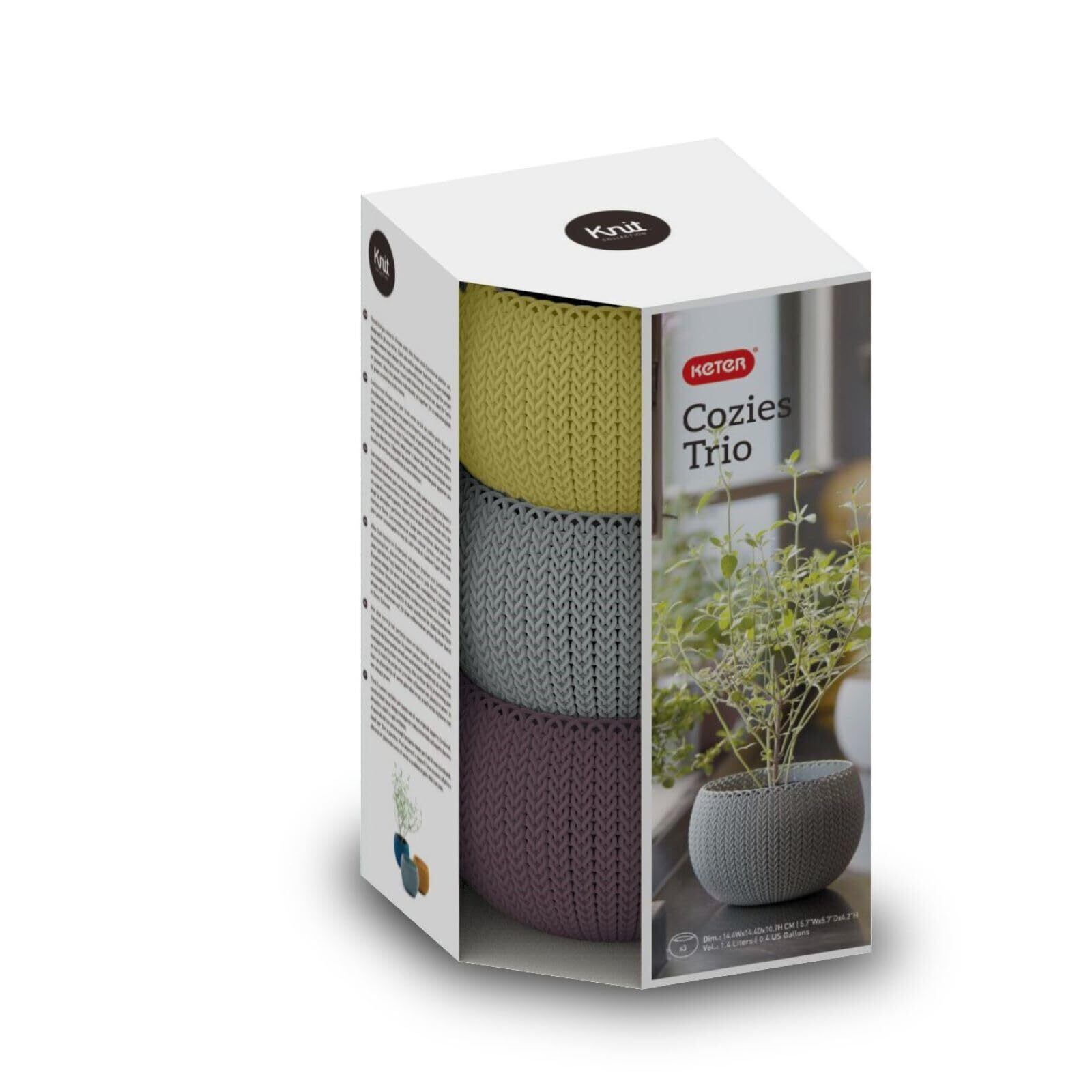 CURVER(カーバー) プランターカバー 3色セット (パープル + イエロー + ブルー) 小物入れ 収納ケース 卓上 おしゃれ 樹脂製 室内 かわいい 小さめ かご keter knit ニット