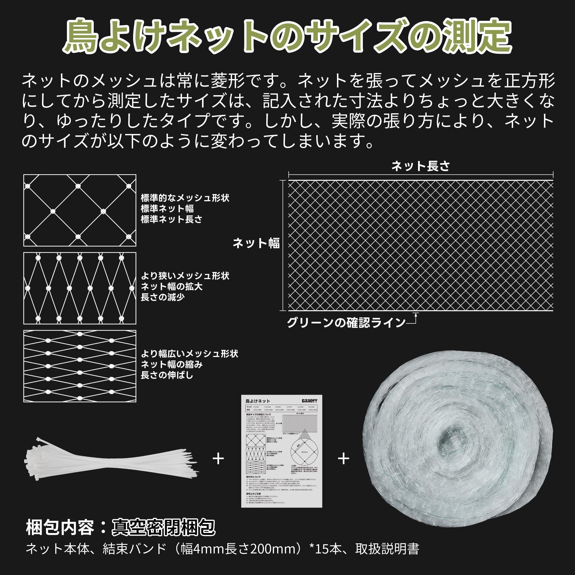 防鳥ネットは、防虫ネット、園芸ネット、防獣ネット、虫除けネット、ツバメよけ対策、コウモリ除け ネット、樹木ネットとしても、プランター、花壇、屋根、果樹、農場、畑、ゴミ置き場などの様々な場所に設置可能です。設置は簡単で、付属の結束バンドでネットを固定します。ハサミで必要に応じてサイズ調整が可能です。