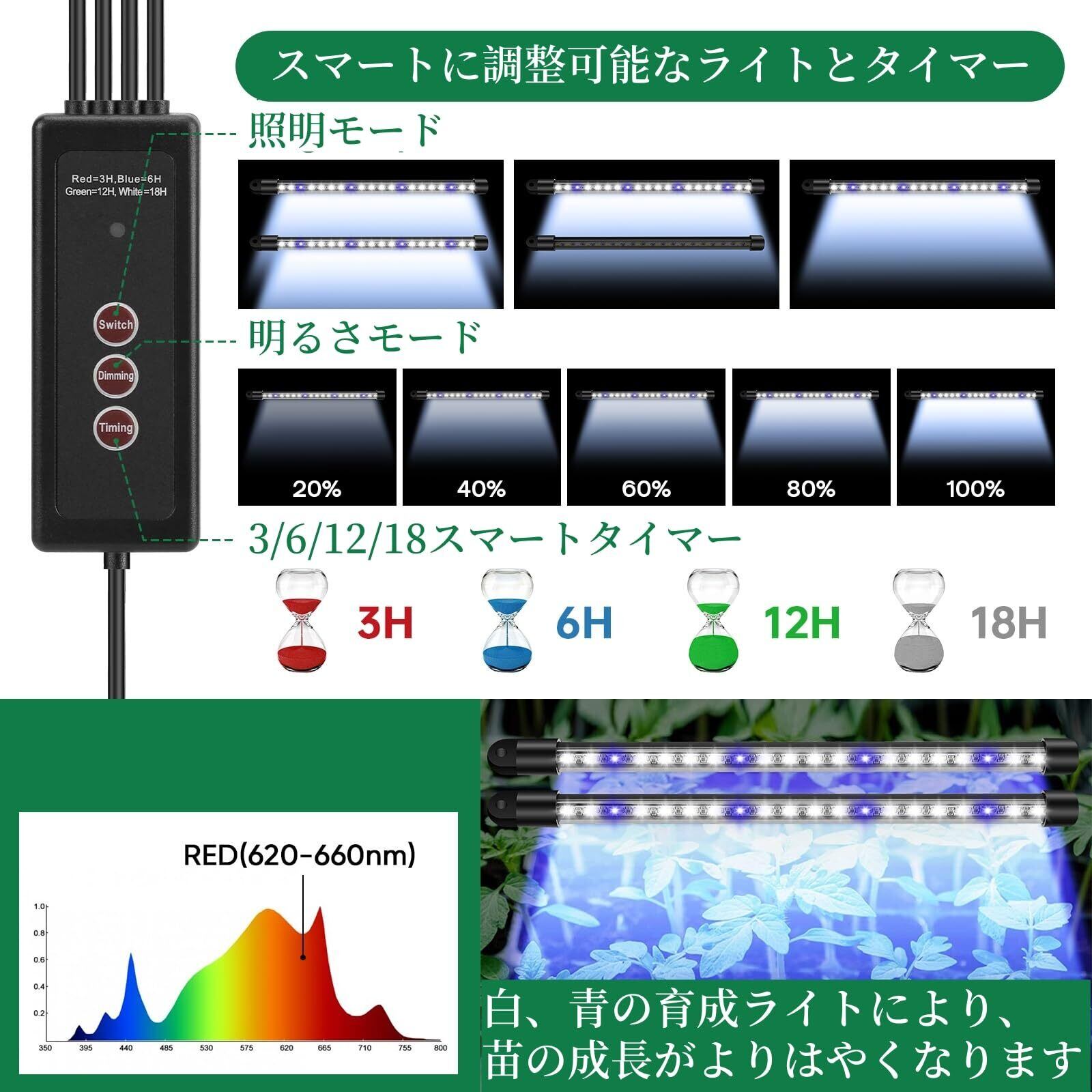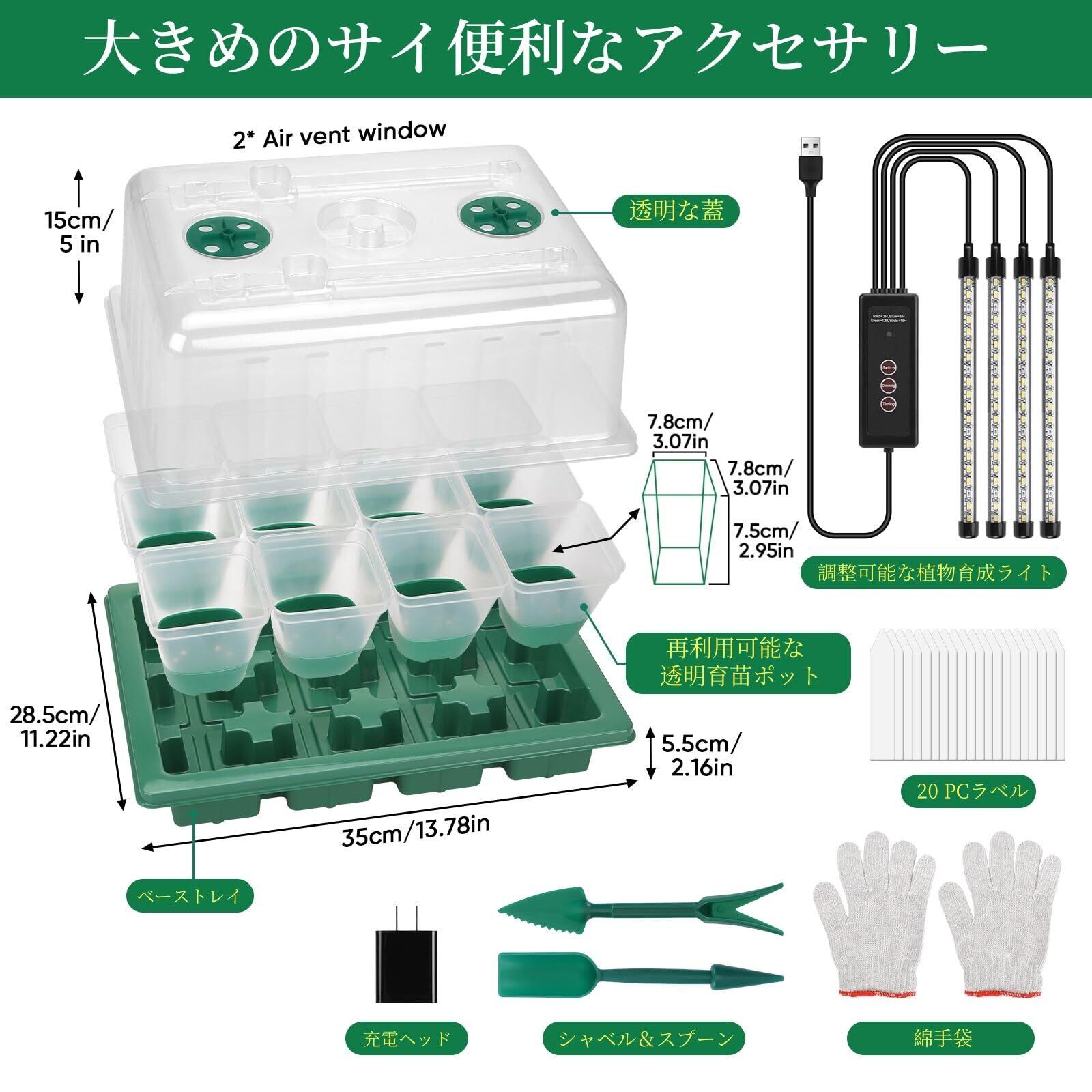 【健康で効率的な成長】私たちの種子スターターキットは、さまざまな植物の苗の小さな種子の成長に理想的なサイズです。野菜、イチゴ、花、果物、その他の植物にも使えます。光の品質、強度、週期を人為的に制御できます湿度、温度、植物は常に最適な生育環境に置かれ、効果的に生育時間を短縮し、作物の収量と品質を高めます。