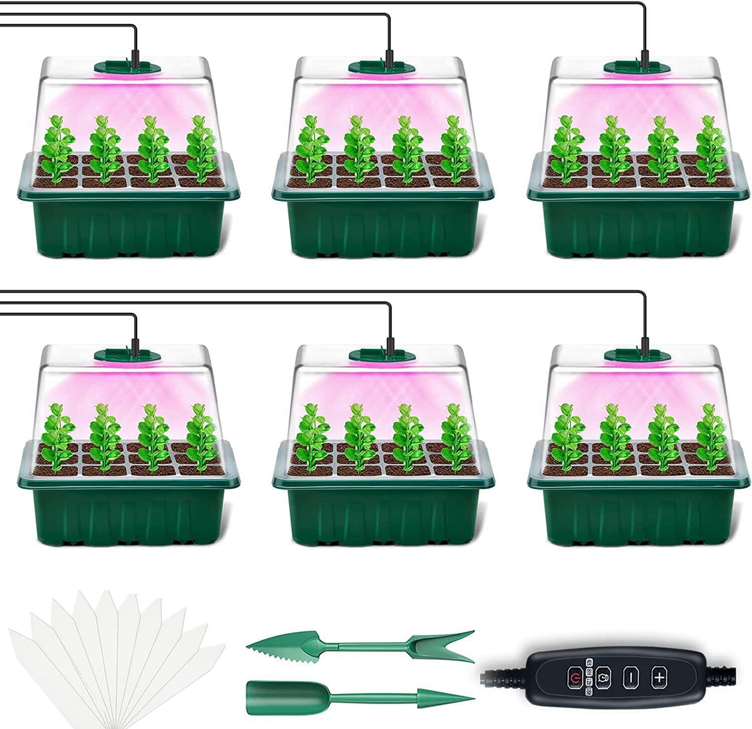 【特価商品】育苗ポッ 6個入り LEDライト付き 種蒔きポット 育苗トレー 12穴 発芽育苗器レー 種まきトレー 育苗箱 育苗ポット 調節可能湿度ドーム 移植ツール付き 苗箱 家庭菜園 育苗器 植物ラベル10枚付き 種蒔きポット 温室用果物栽培トレイ 便利性育苗トレー ポット 耐久性高い育苗トレイ 通気性 発芽 野菜 植物 苗 植栽 園芸 (グリーン) | bobo