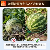 スイカを地面から持ち上げて通気性を良くし、変色や虫害、病気、傷つき、汚れを防ぎます。