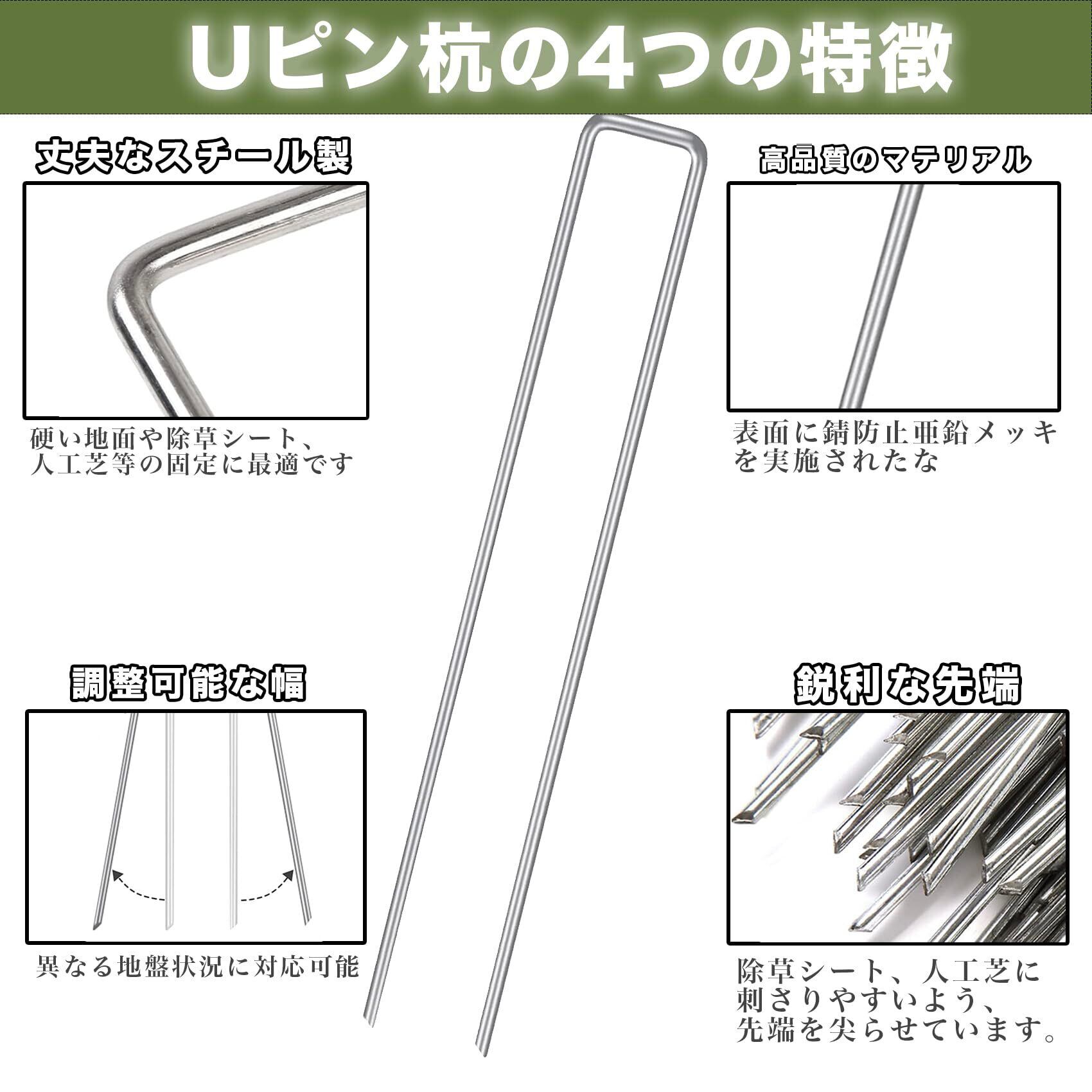 【広範囲な用途】Uピンは、人工芝、防草ボード、テント、不織布、プラスチックマルチなどの設置や固定に使用できます。テントの固定ピンとしても使えます。