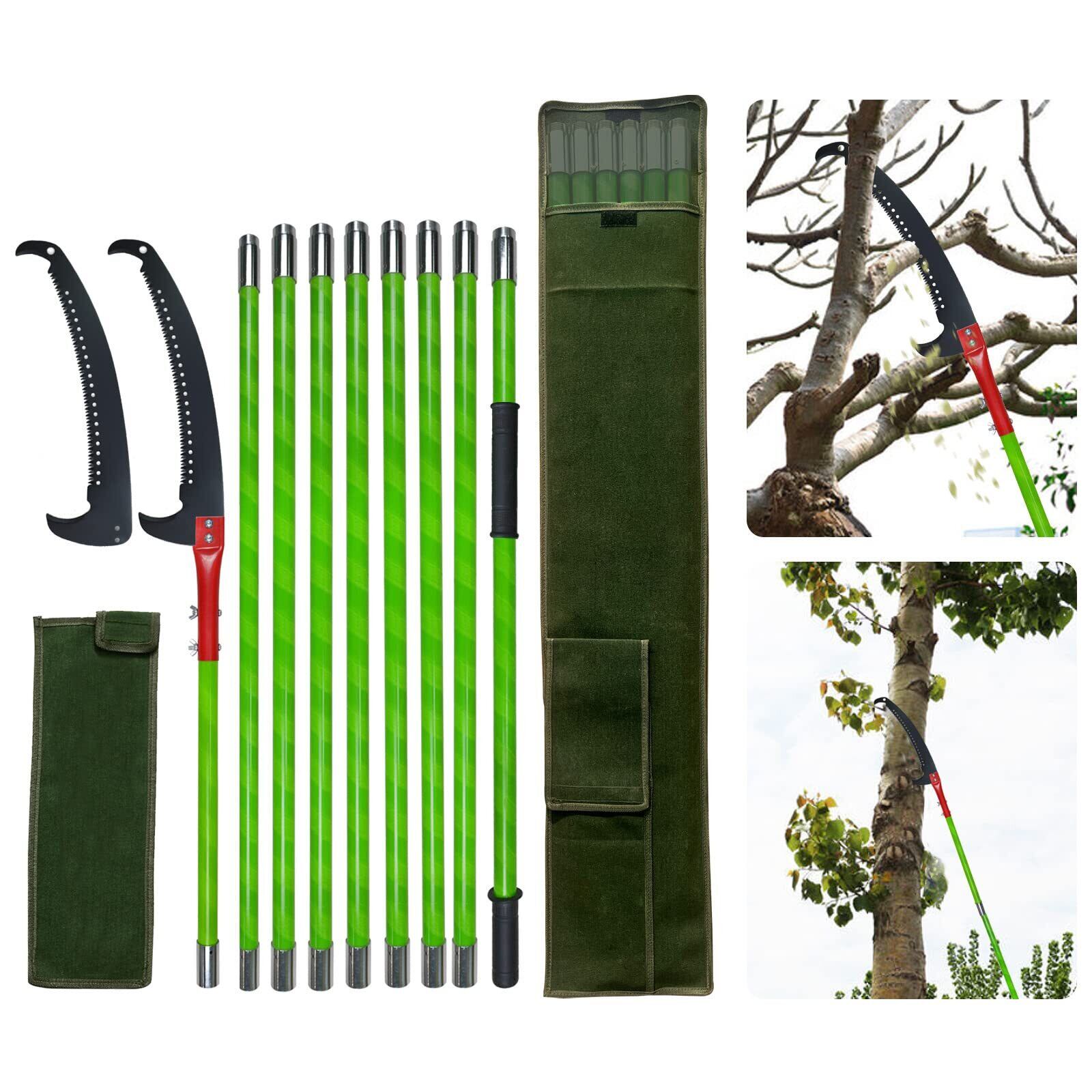 交換用鋸刃と耐久性素材:剪定のこぎりは、8段階のエポキシ樹脂ポールと合金鋼の鋸刃で構成され、軽量で耐久性があります。交換用の追加の鋸刃があります