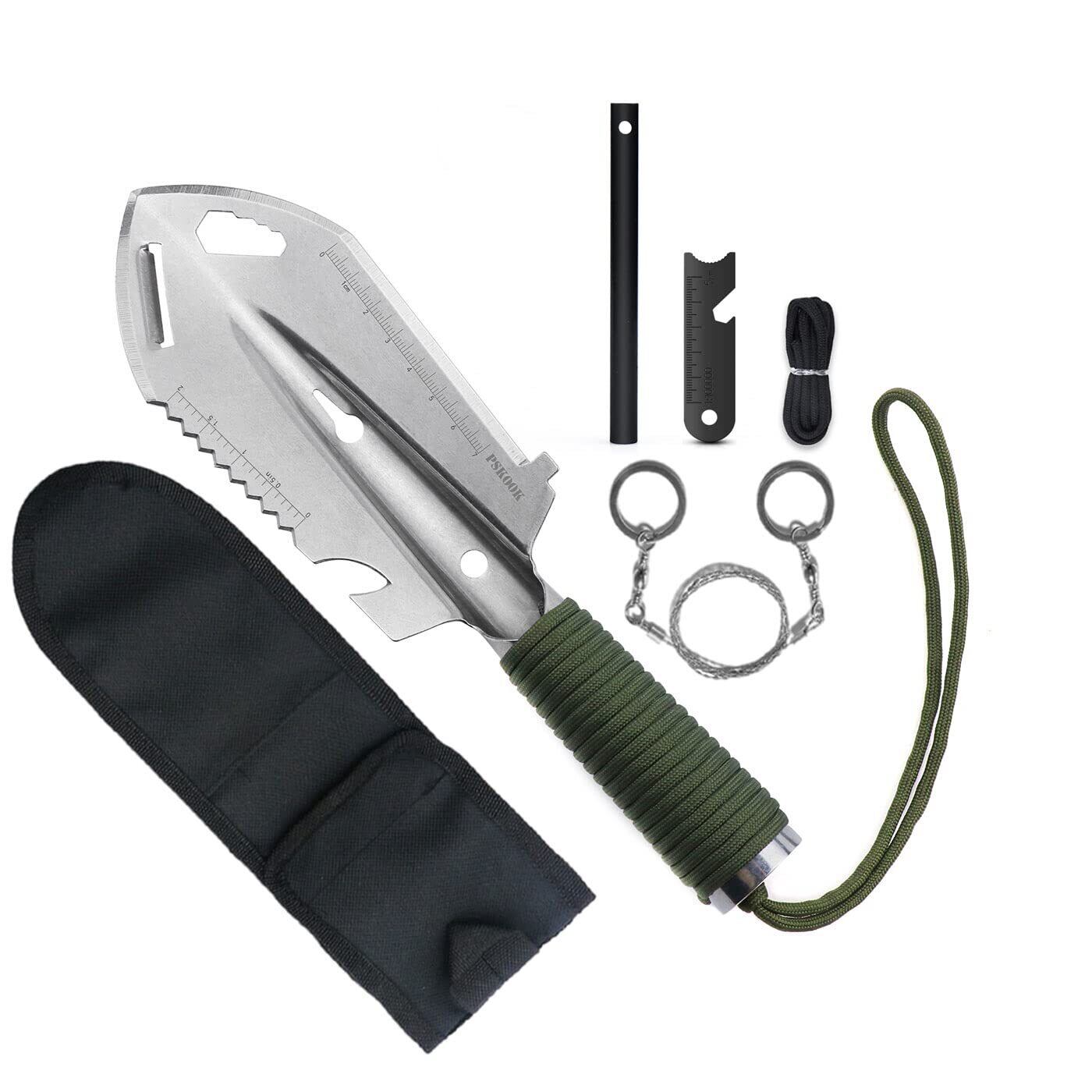 PSKOOK 多機能シャベル 園芸 スコップ アウトドア ガーデニング コンパクト 花壇 キャンプ用 防災用 軍用 緊急ツール 災害対策 収納袋付き