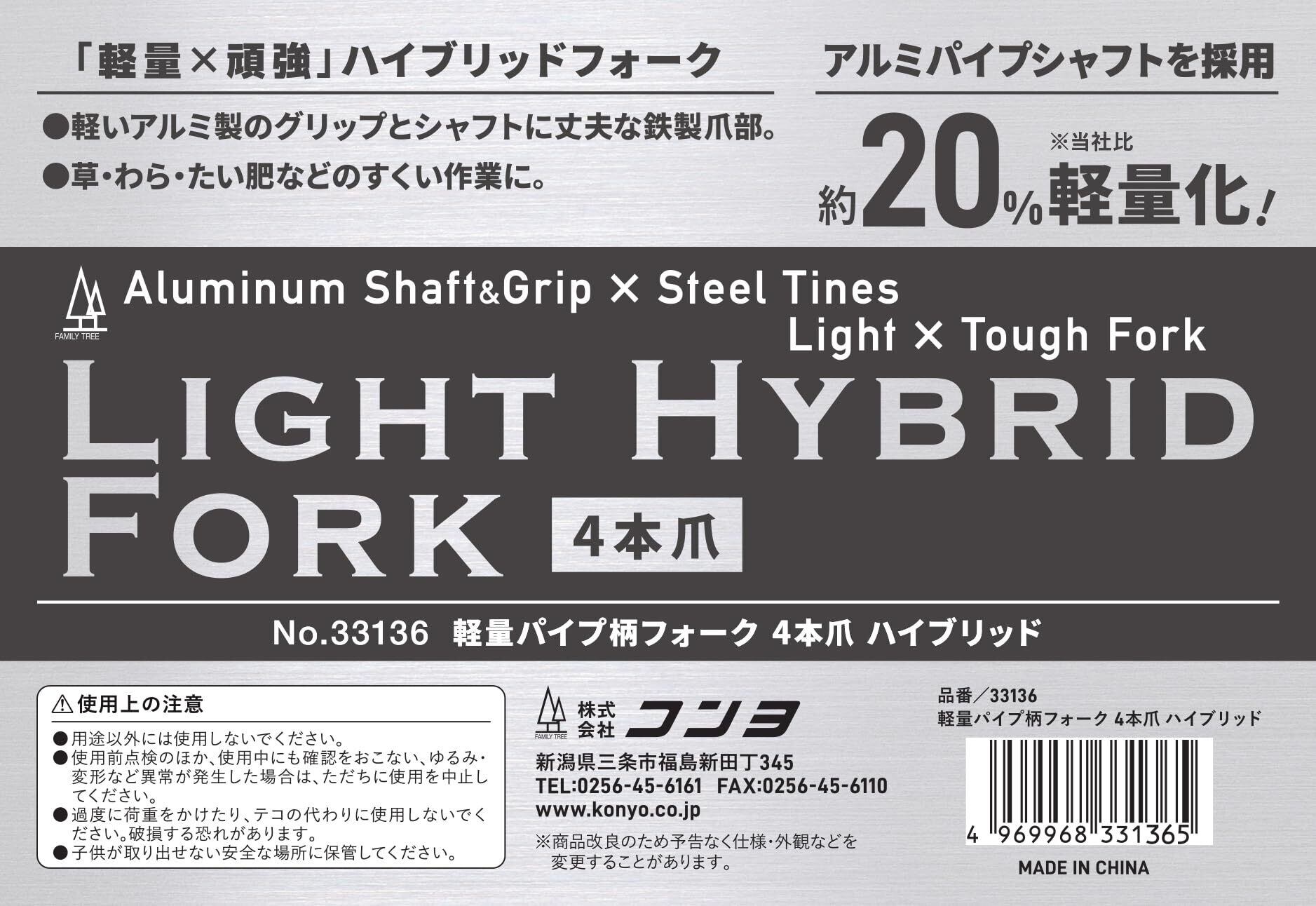 近与(KONYO) Family Tree 軽量パイプ柄フォーク4本爪 ハイブリッド (アルミパイプ柄+鉄製爪<頭>) 20%軽量化<当社比>
