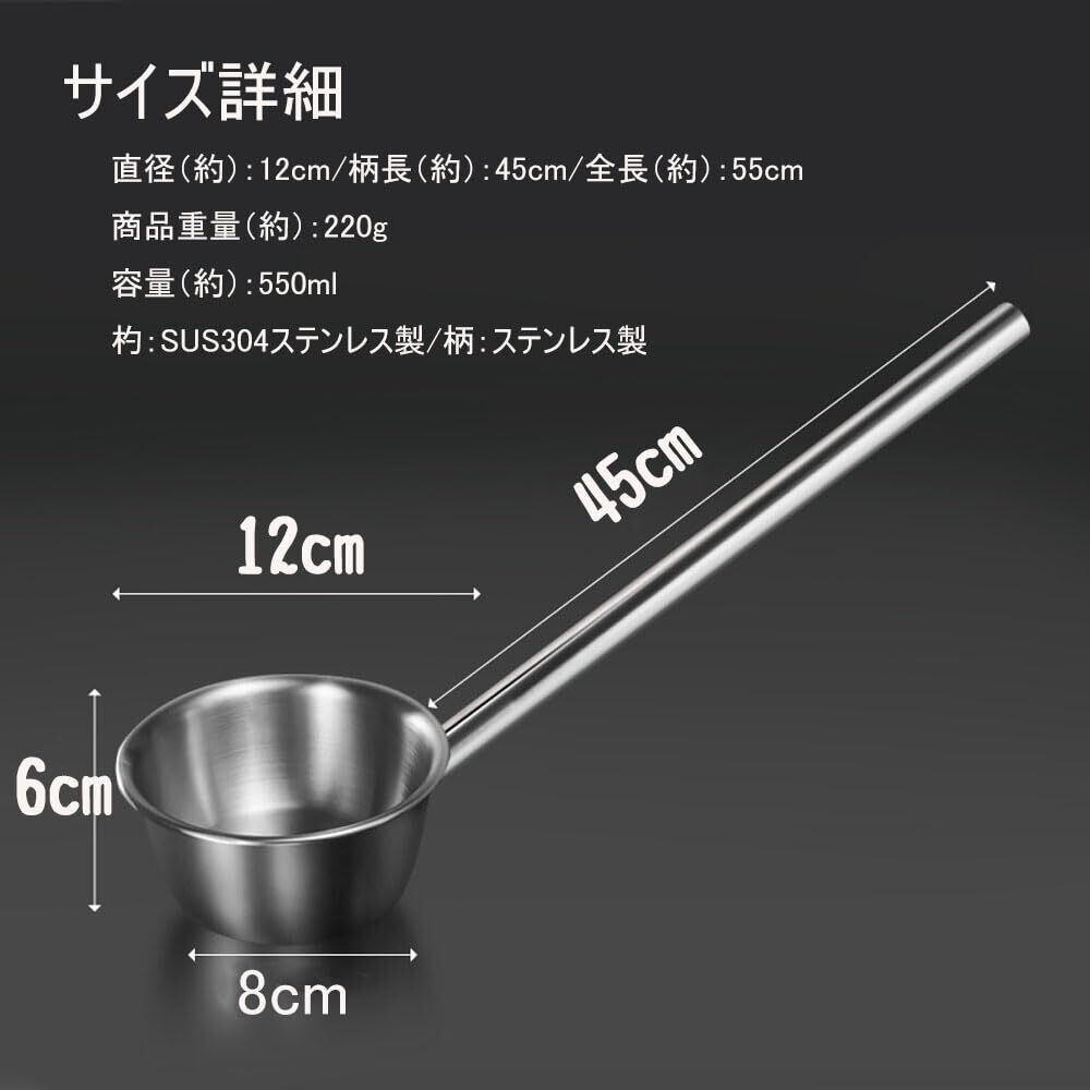 【サイズ詳細】直径(約):12cm/柄長(約):45cm/全長(約):55cm/商品重量(約):220g/容量(約):550ml/ステンレス製