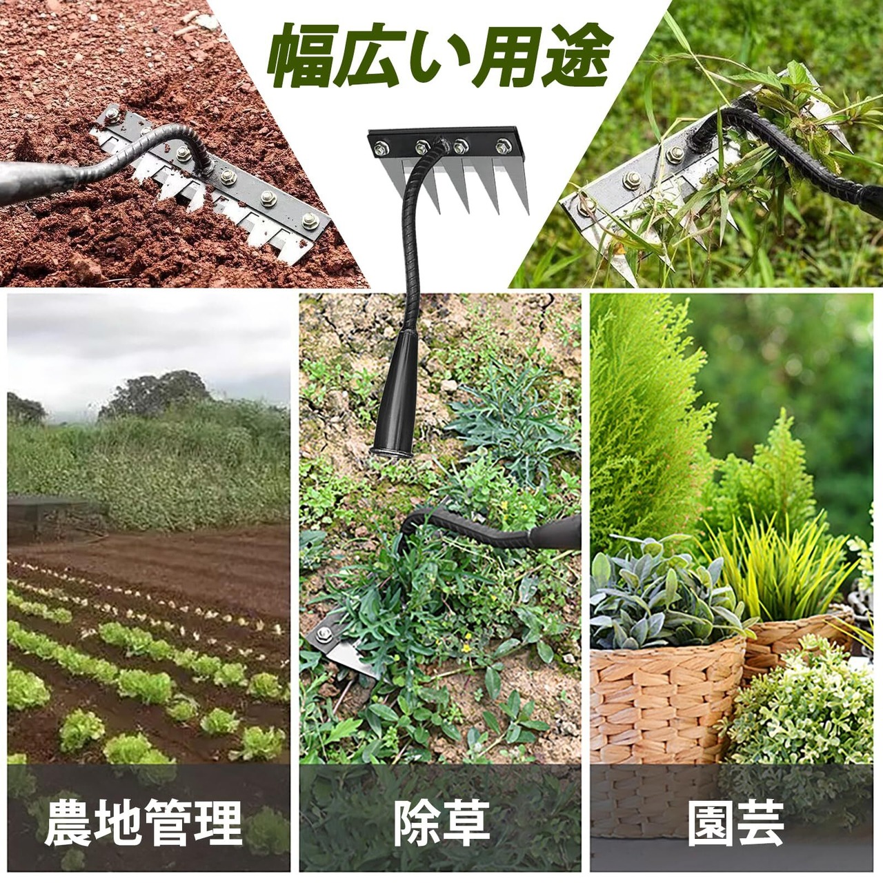 簡単な除草: このツールは、狭くて手の届きにくい場所の雑草を取り除くのに役立ちます。 4本の鋭い歯を草の根元近くの土に押し込んで引っ張るだけです。また、土の表面を砕いて排水を良くします。非常に使いやすく効率的です