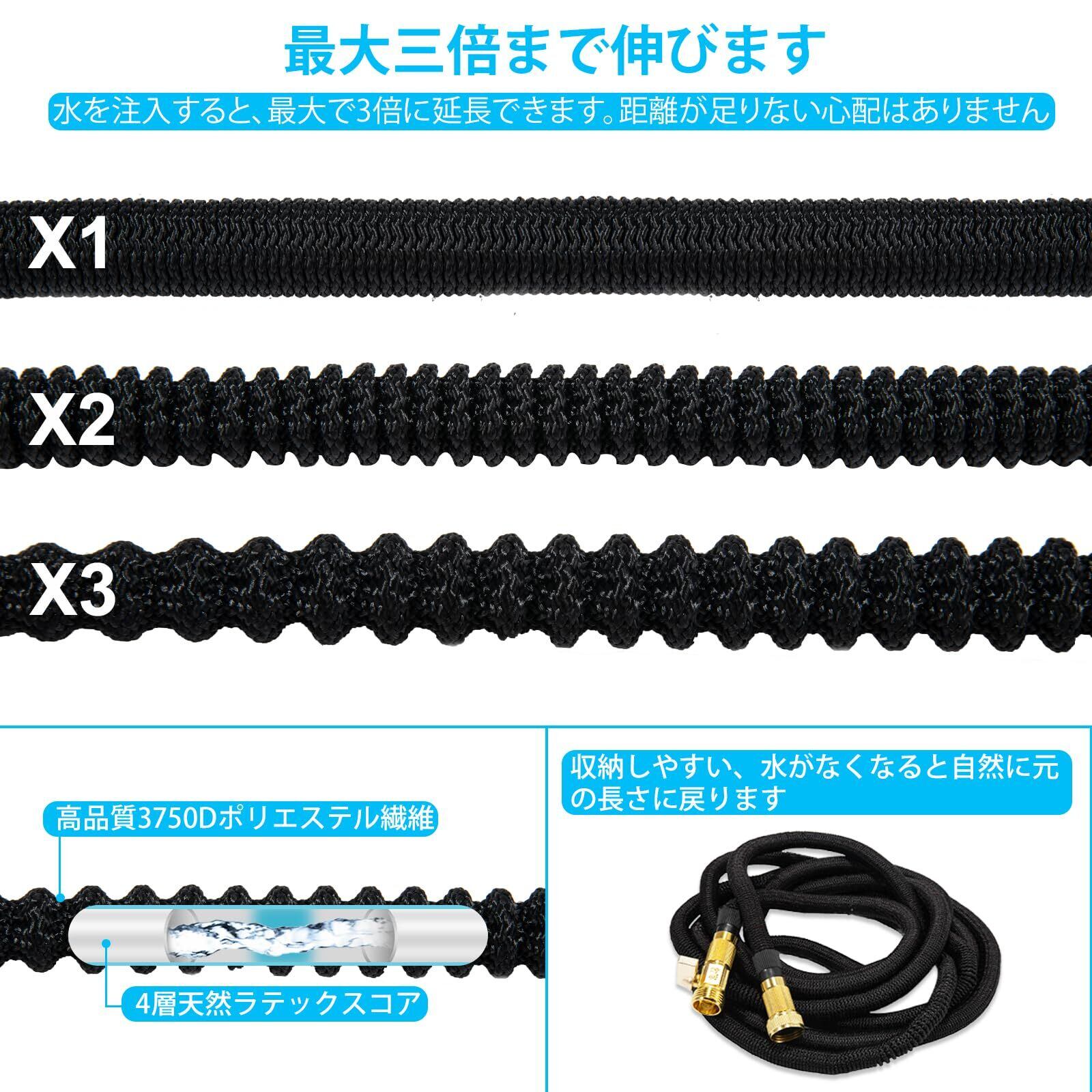 Goture ホース 散水ホース 伸縮ホース 3倍伸張可能 8種類のスプリンクラー機能 7.5m 3750Dポリエステル 三重構造 軽量 超強度素材 ノズル付き 収納便利 ゴム製 ガーデン 洗車 水やり 掃除 ペット浴 ペットバス 家の掃除