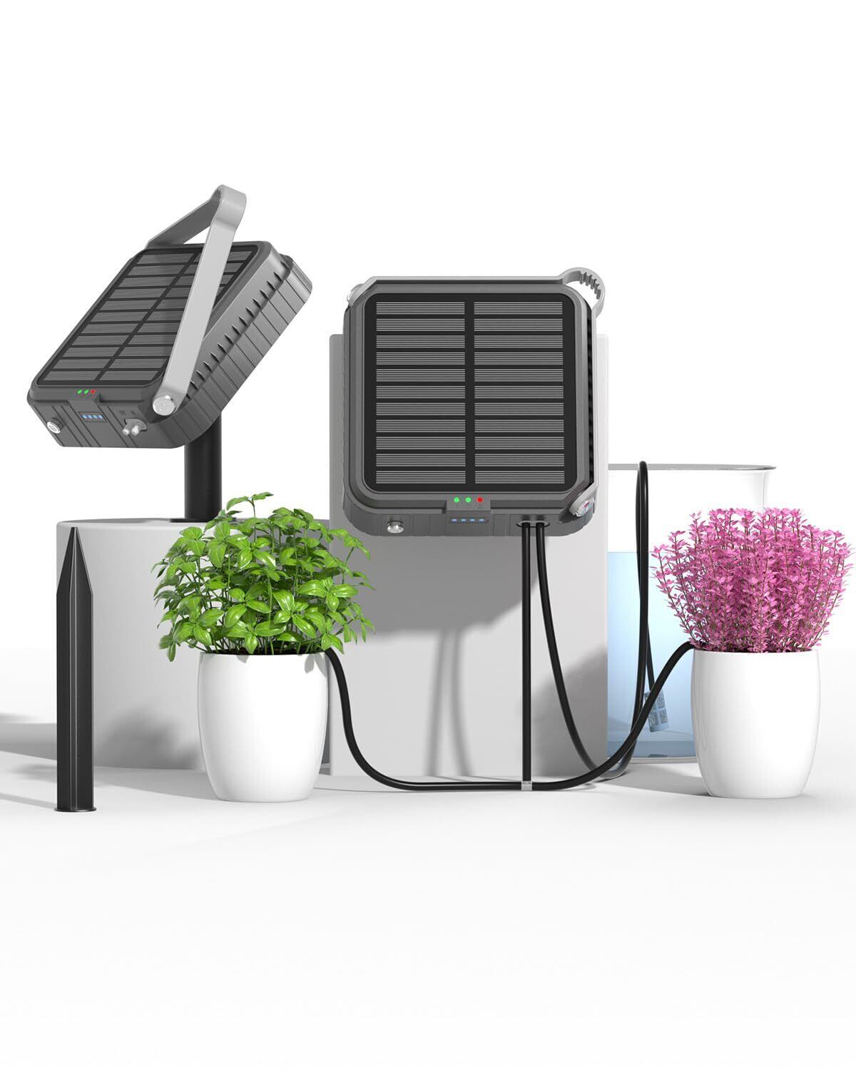【数量限定】ソーラー式自動散水タイマー 15鉢対応 15m散水ホース付き 屋内外兼用 植物自動水やりシステム 自動灌漑装置 自動散水機 家庭用 ガーデニング用品 水やりシステム 留守 鉢植え給水 (グレー) | bobo