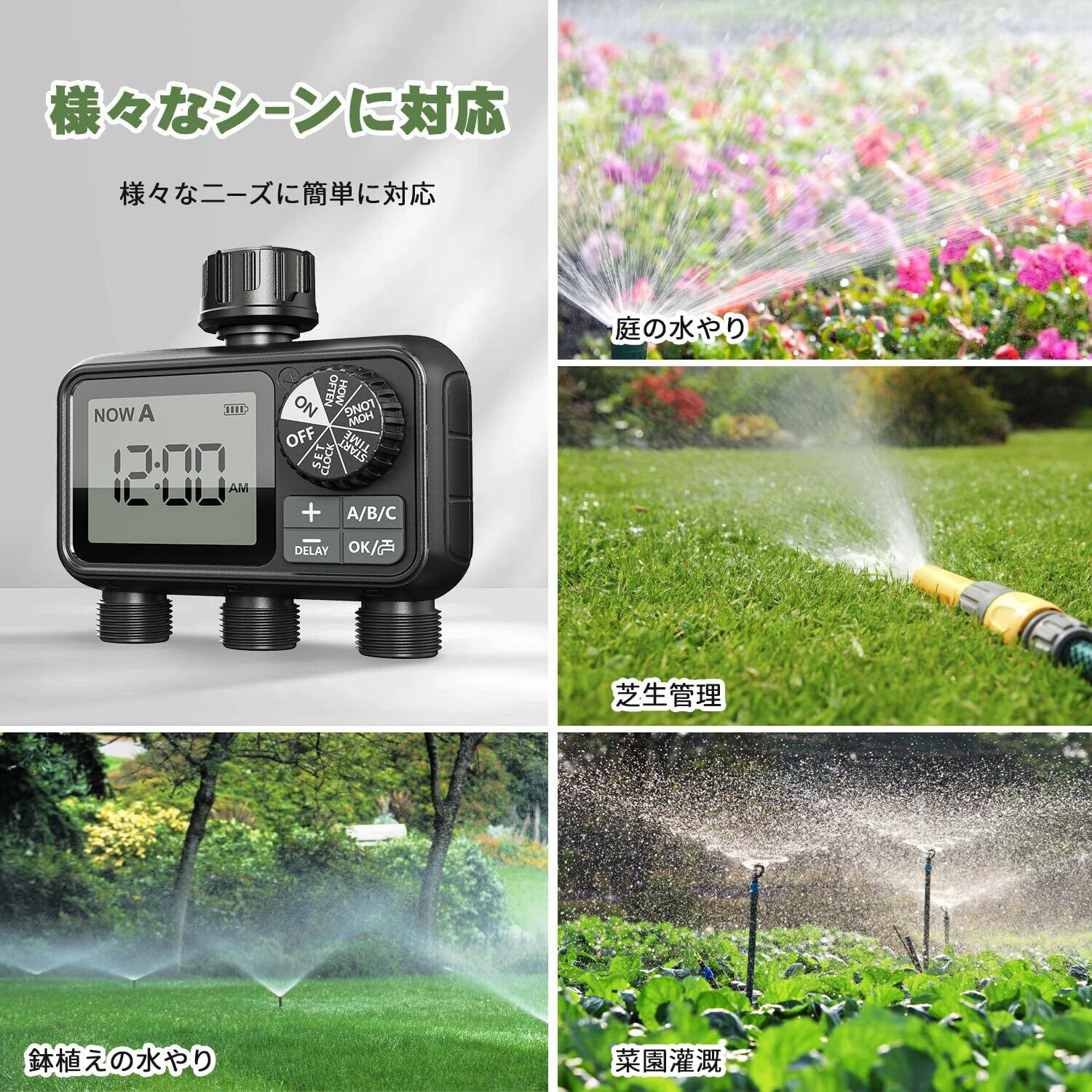 「4つの独立した散水エリア&真鍮材料インターフェイス」:この新しくアップグレードされた灌漑システムは、4つの独立したバルブが装備されている、あなたはより柔軟にあなたの散水計画を設定し、完全に1台のマシンのデュアル-目的機能を実現することができます。新しくアップグレードされた黄色い銅の材料インタフェース、より強い、より強い耐腐食性。