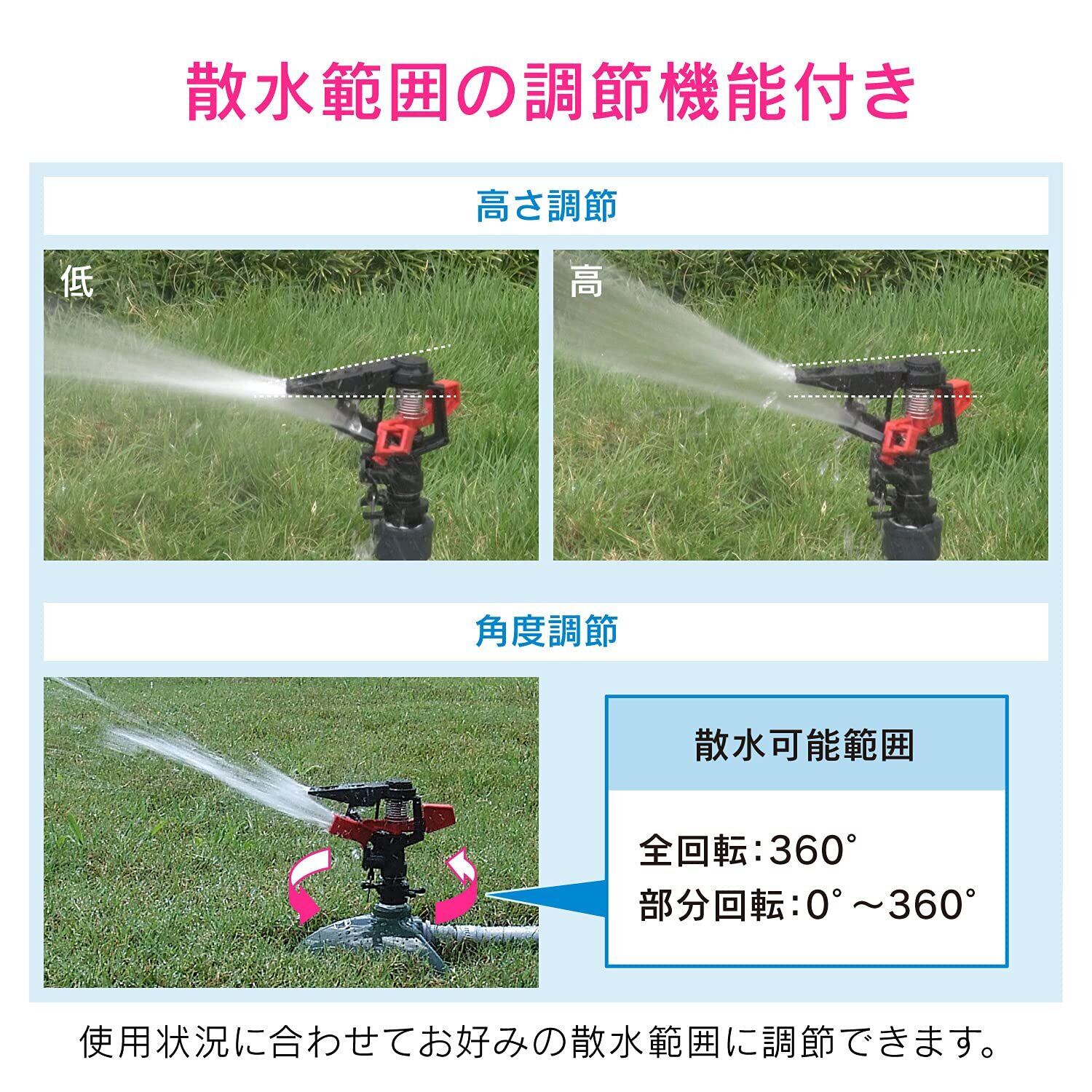 ・水圧でスプリンクラーが回転し、円形や扇形に散水できる