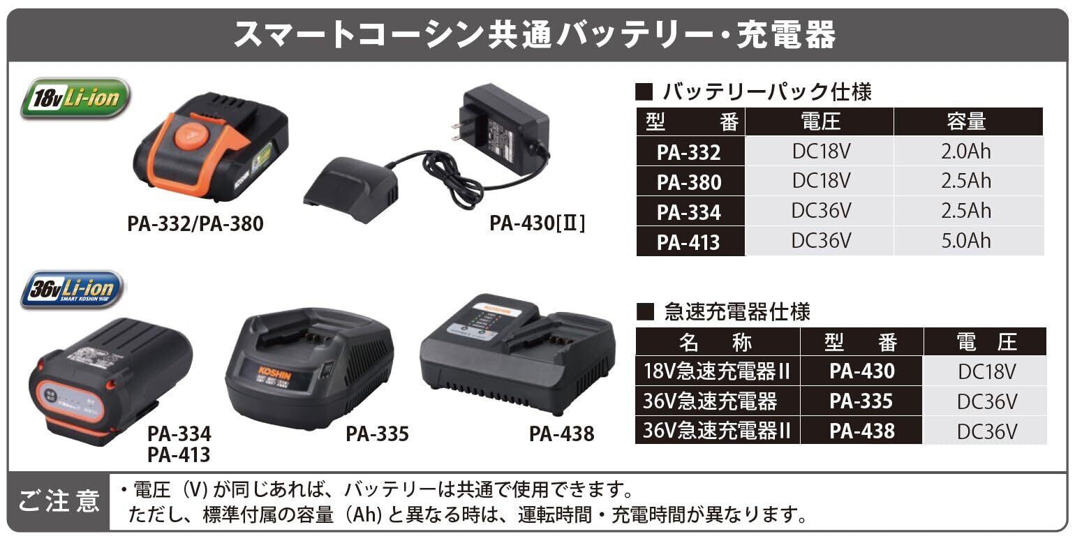 工進(KOSHIN) 【バッテリー2個付き】 36V 5.0Ah 充電式 草刈機 SBC-3650B-AAC バッテリー2個・充電器付 軽量 分割式 Uハンドル 予備バッテリー