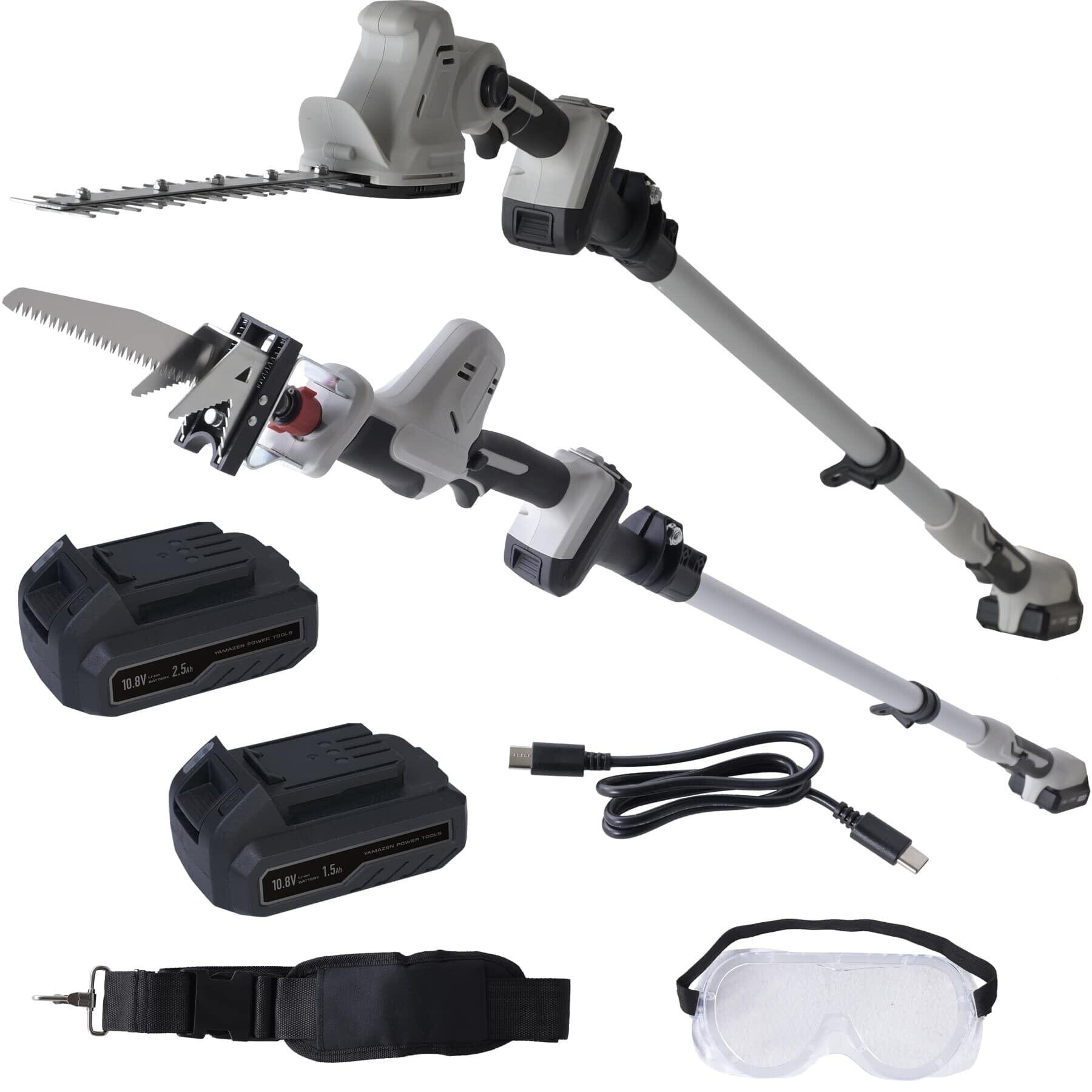 【特価セール】山善(YAMAZEN) 10.8V 充電式 高枝ガーデントリマー&ガーデンソーセット 伸縮式 コードレス 4WAY 高枝切りばさみ ヘッジトリマー 高枝チェーンソー 剪定 枝切 竹切 PHS-1025 | bobo