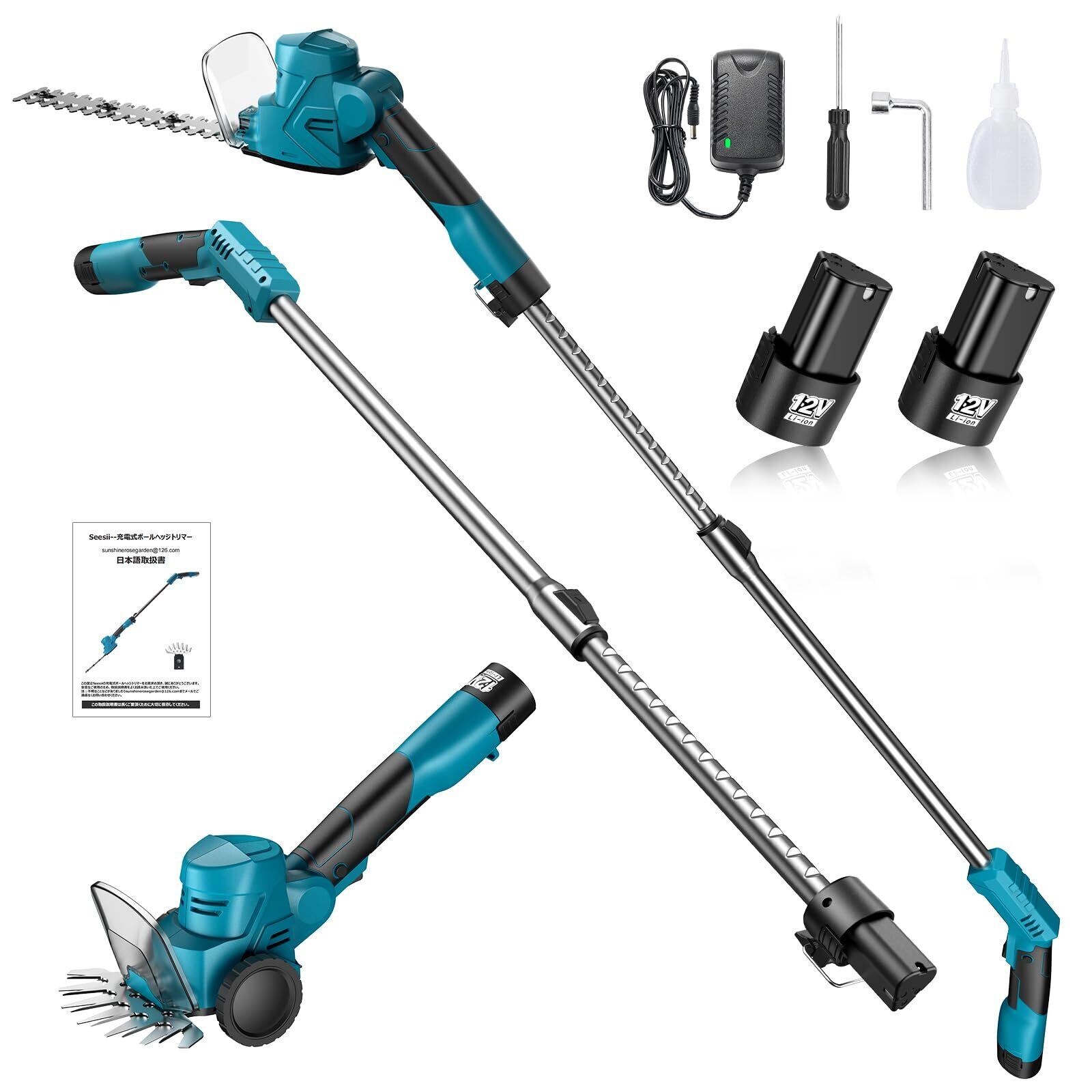 【2025新型】SEESII ポールヘッジトリマー 充電式 電動芝生バリカン1台3役 充電式剪定トリマー 革新的な0.6kgの軽量ポール 着脱伸縮式で長さ無段階調節 バリカン刈幅160mm トリマー刈幅250mm 補助輪 2個大容量バッテリー 芝生を刈る 庭木や生垣の剪定 植木手入れ 園芸
