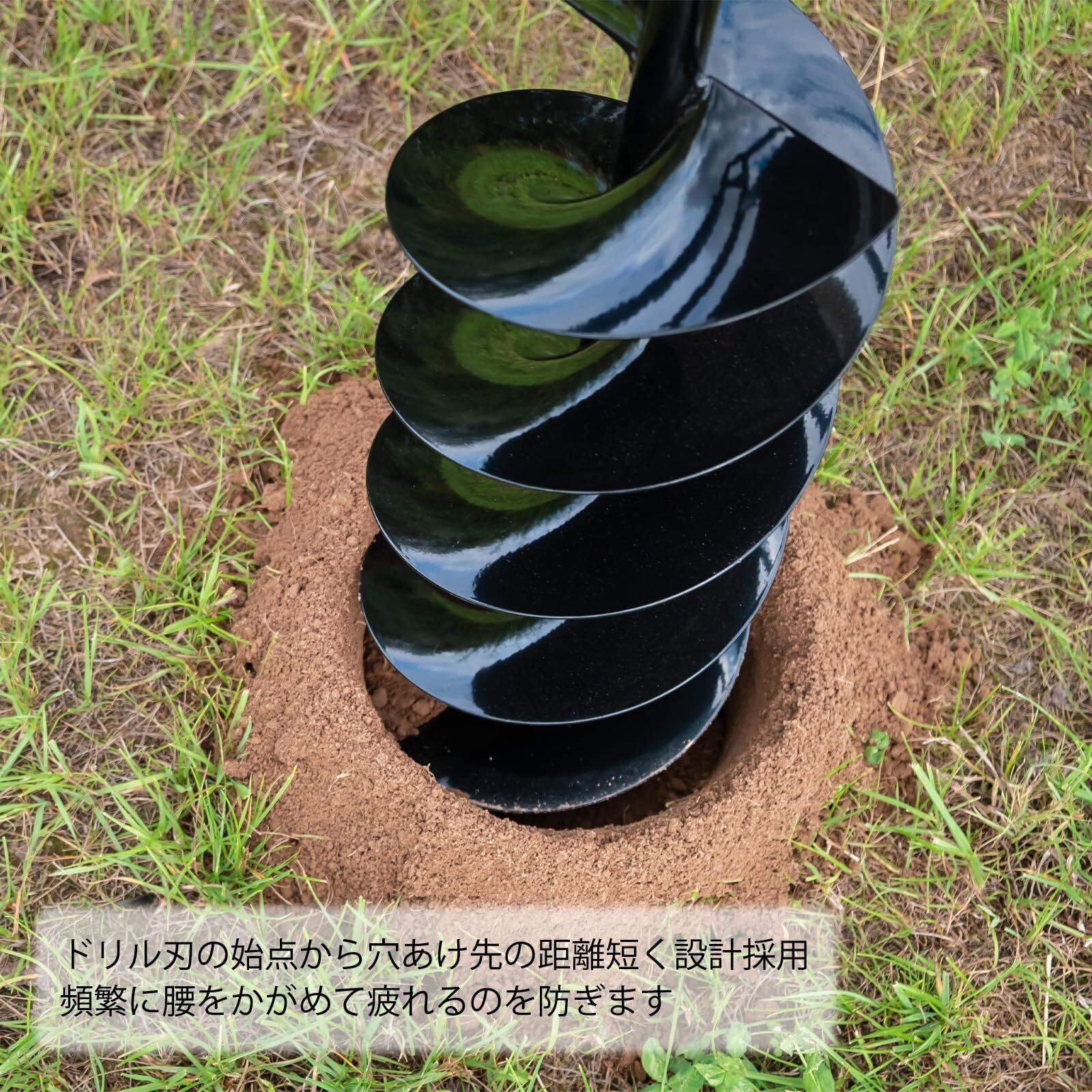 説明:アースドリルは、電動ドリルにグランドオーガーを取り付けるだけで、固い土壌に効率的に穴や土を掘削できます。手掘りに比べ断然速い、固い、硬い土壌でもできます。初心者でも老若男女問わず簡単に穴あけ作業が可能。