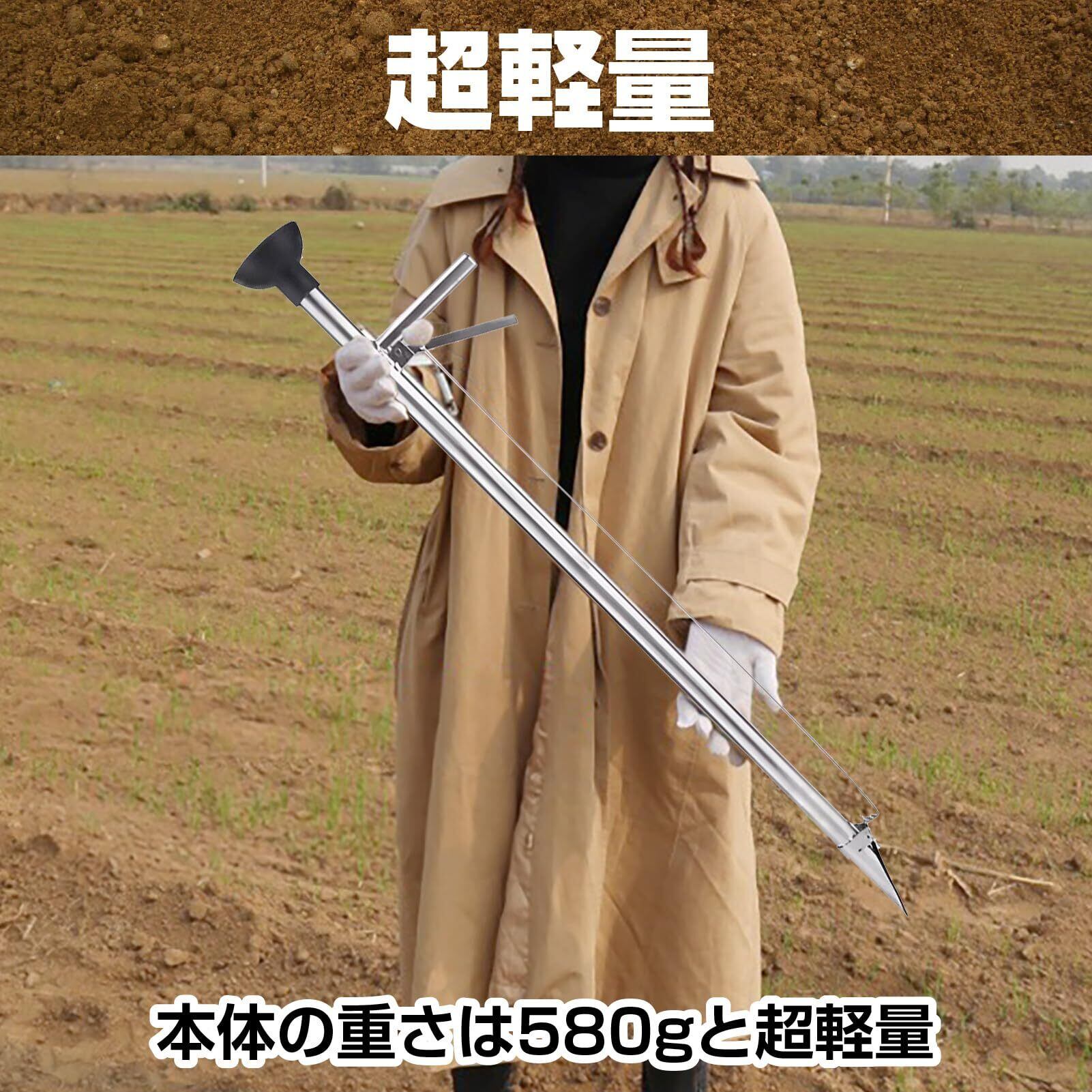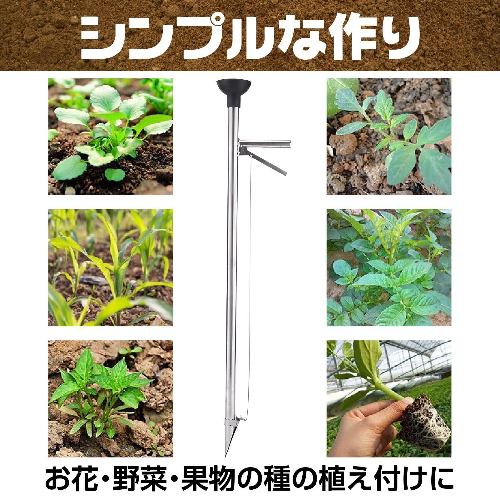 穴掘り機としても使用可能で、マルチ穴開け器として大小の穴を掘ることができます。立ち作業農具として設計されており、腰への負担を軽減します。効率的な種蒔きを実現できます。
