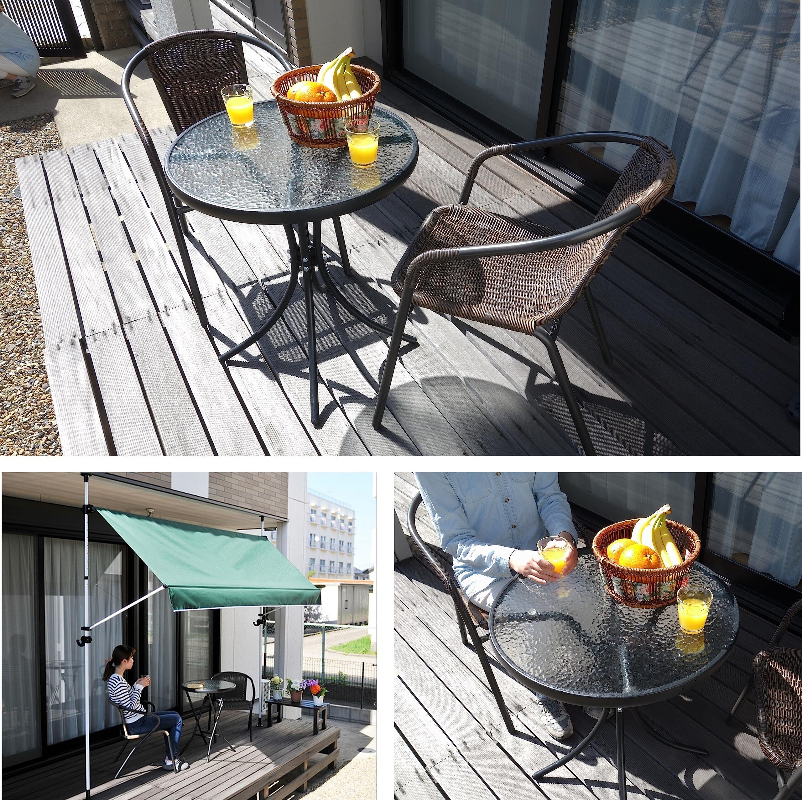 お庭でくつろぐときに合ったらうれしいダイニングテーブル。ガラス天板のため、飲み物や何かこぼしても汚れがふき取りやすく、長く清潔に保つことが出来ます。