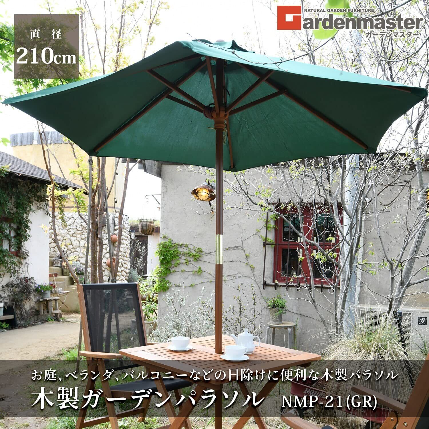 ガーデンマスター(Gardenmaster) ガーデン パラソル 木製パラソル (直径210cm) お庭 ベランダ テラス バルコニー 日よけ 大型 風に強い NMP-21(GR) グリーン