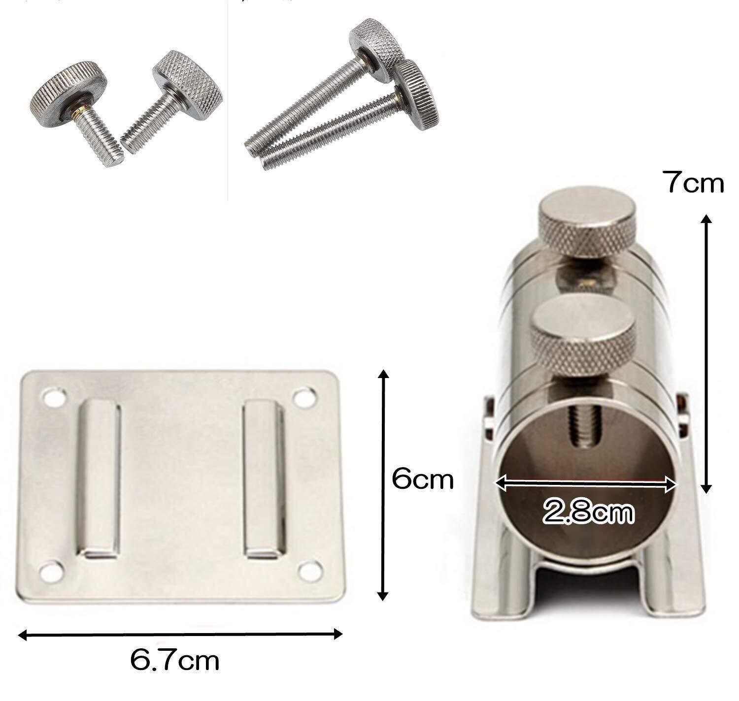 金具のサイズ : 6cm × 6.7cm<br><br> ホルダーサイズ : 7cm、内径 : 約2.8cm<br><br> ステンレス製。※ホルダーの取付、取り外しの際は手を切らないよう手袋をはめて作業してください。商品によって重量、直径に多少の誤差がございます。
