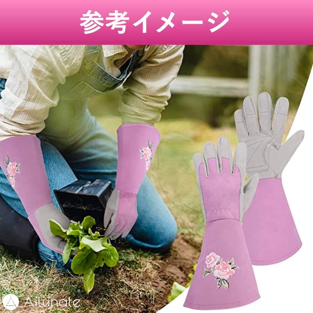Ailunate ガーデングローブ 園芸用手袋 バラ ロング トゲ防止 革 ガーデニンググローブ おしゃれ レディース (Mサイズ 薄紫)