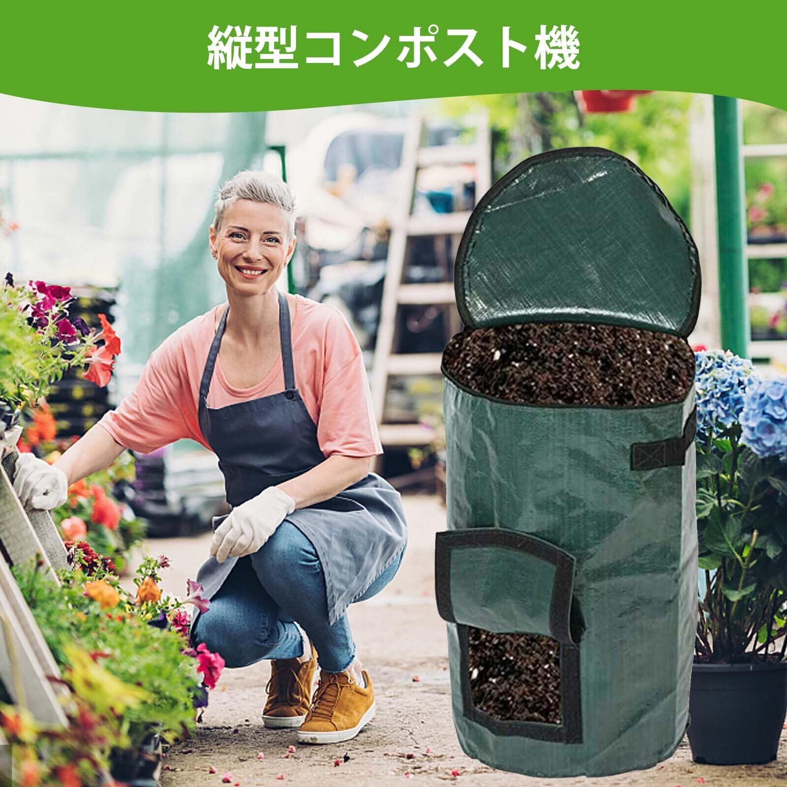 コンポスト バッグ ガーデン用 植え袋 堆肥 バッグ ゴミ処理 コンポスト 容器 落ち葉処理 肥料袋 剪定くず 収納 植え袋 屋外 堆肥 廃棄物処理 生ゴミ 発酵 家庭用 園芸用 折り畳め 自立式 環境に優しい 再利用可能 PEの布製 エコ (緑 D35cmx60cm)
