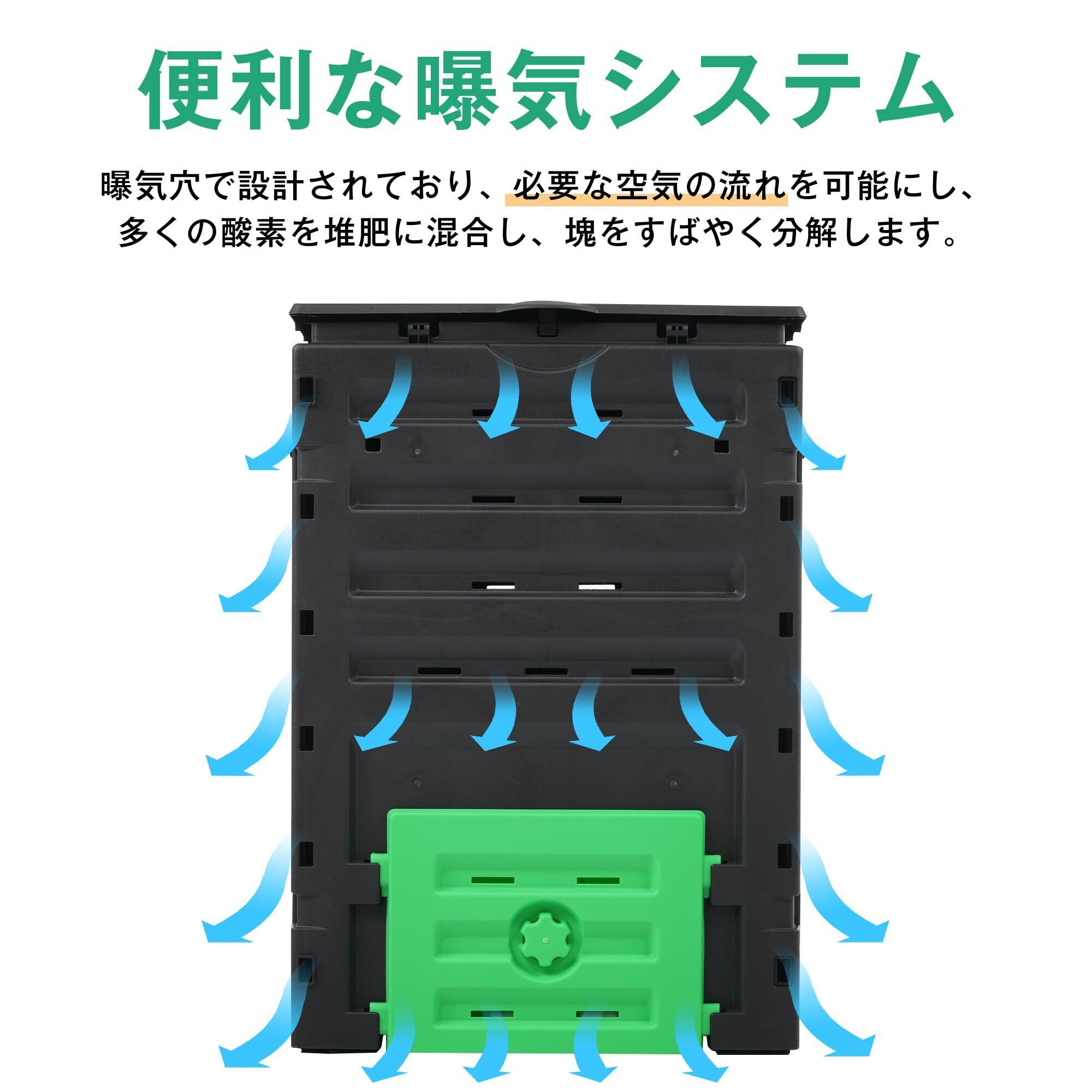 【通気性の良い作り】空気循環が良く、効率的に発酵できます。四方には多数通気口が付いているので、約2〜3ヶ月と比較的早く発酵することが可能です。