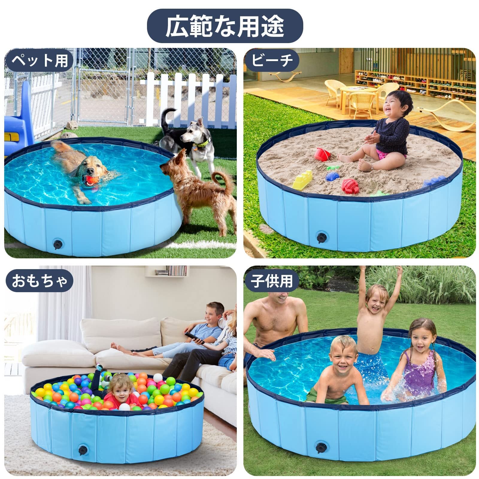 Ninonly プール 子供用 ペット用 バスプール 頑丈設計 折りたたみ式 収納便利 排水キャップ付 空気入れ不要 お庭用 直径120x高さ30cm(ブルー)