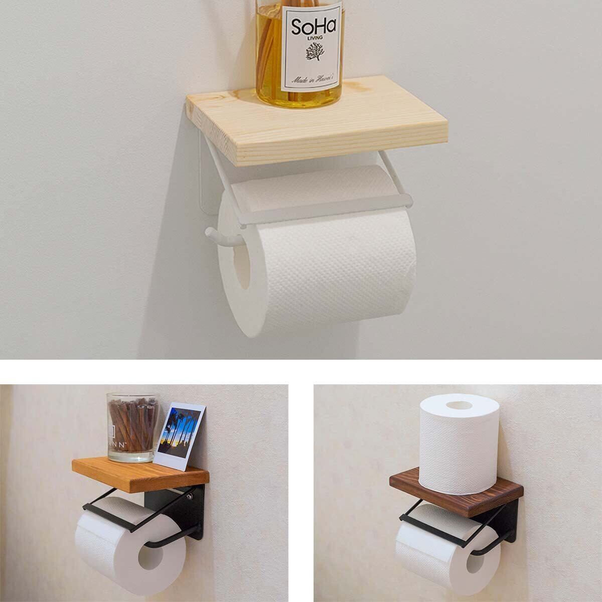 ottostyle.jp トイレットペーパーホルダー 【シングル/ブラウン】 パイン材/オイル仕上げ 天然木 棚 小物置き 簡単設置