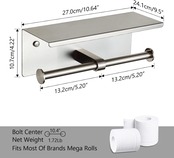 【特価商品】WXVOVXW トイレットペーパーホルダー 2連 トイレっとペーパーホルダー ペーパーホルダー トイレ 棚付き2枚紙巻き スマホや小物などが置ける棚板付き 太巻き 芯なし 対応 簡単設置 工事不要 マンション 戸建て 賃貸 インテリア DIY ステンレス製ダブルペーパーローラー 棚板付き 27cm幅 ネジ付き (シルバー 2連) | bobo
