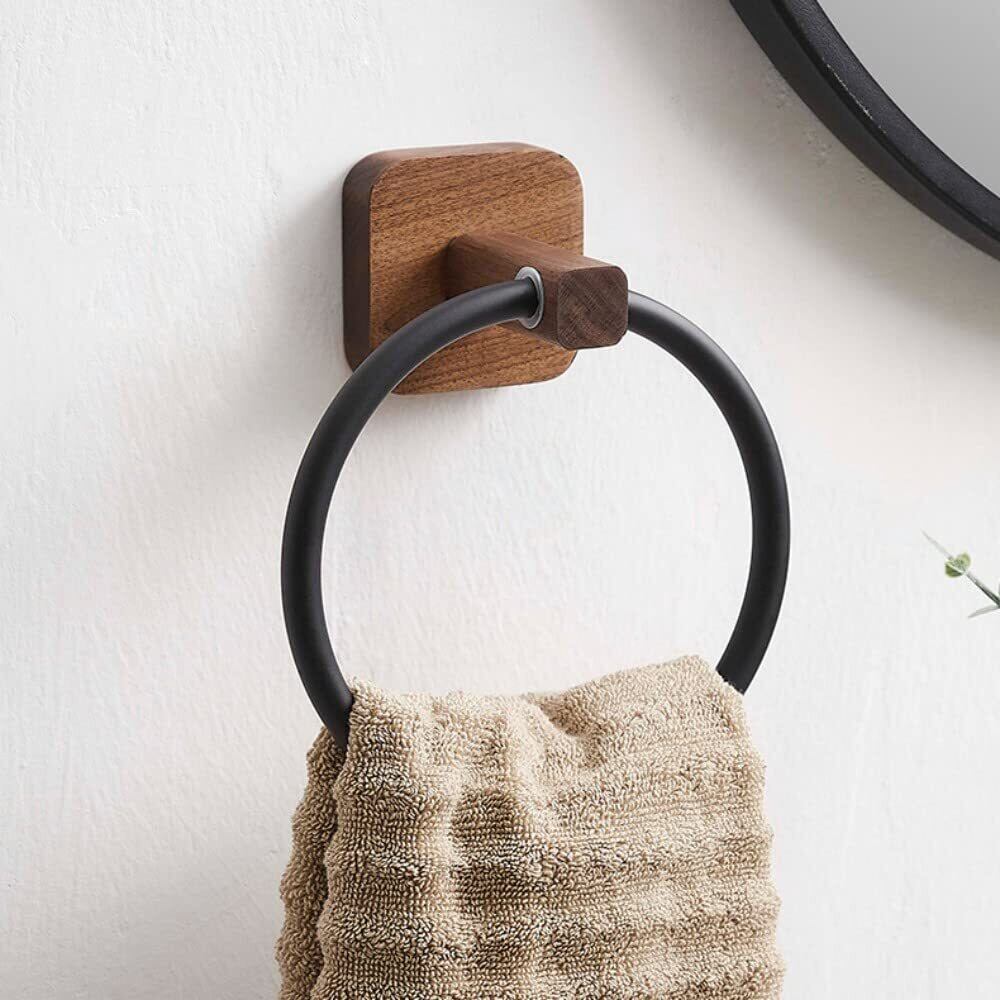 【材質】美しい木目の黒クルミ材とファション感溢れるアルミニウムの組み合わせがとってもおしゃれなタオルリングです。防カビ、防水、防錆、耐摩耗性があり、非常に丈夫で長持ちします。