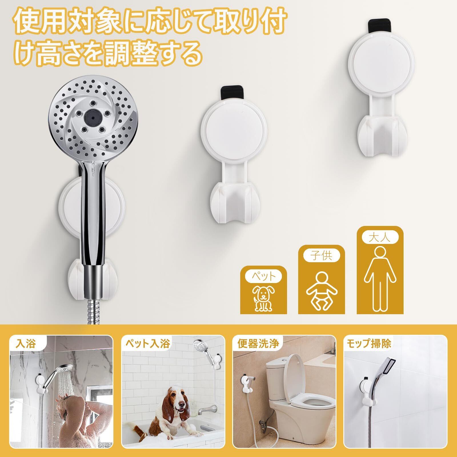 ONZIM シャワーフック シャワーホルダー 強力真空吸盤 穴あけ不要 デタッチャブル シャワーヘッドホルダー 高さ 角度調整可能 壁取り付け 吸盤フック 耐水性 耐湿性 汎用 浴室用