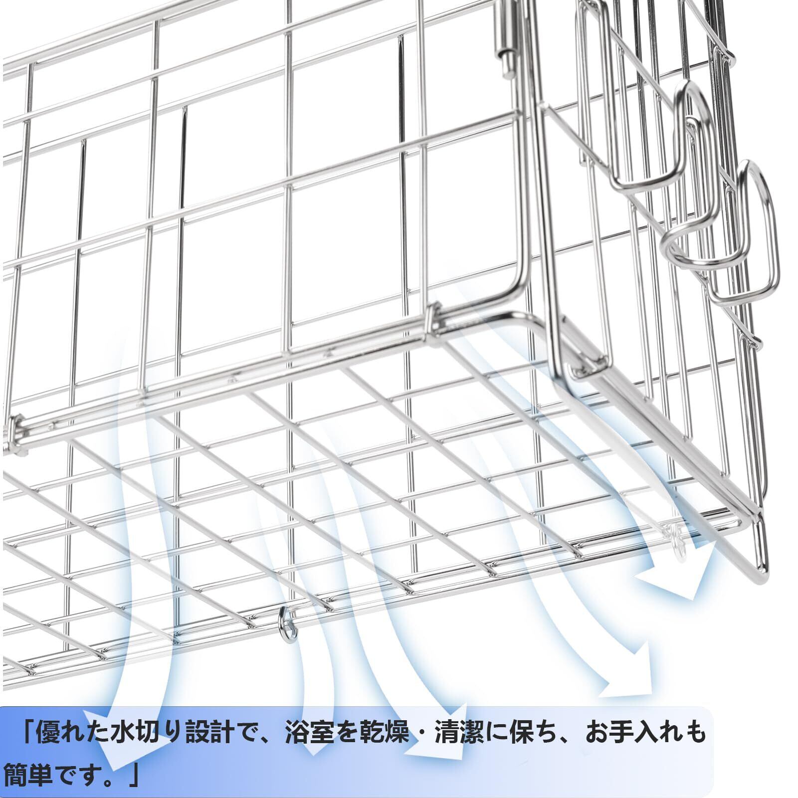 Raihu お風呂 ラック 吊り下げ お風呂 バスケット シャンプー カゴ 吊り下げ 18/8ステンレス製 タオルハンガー/小物フック付き 幅30×奥行14.5×高さ39cm