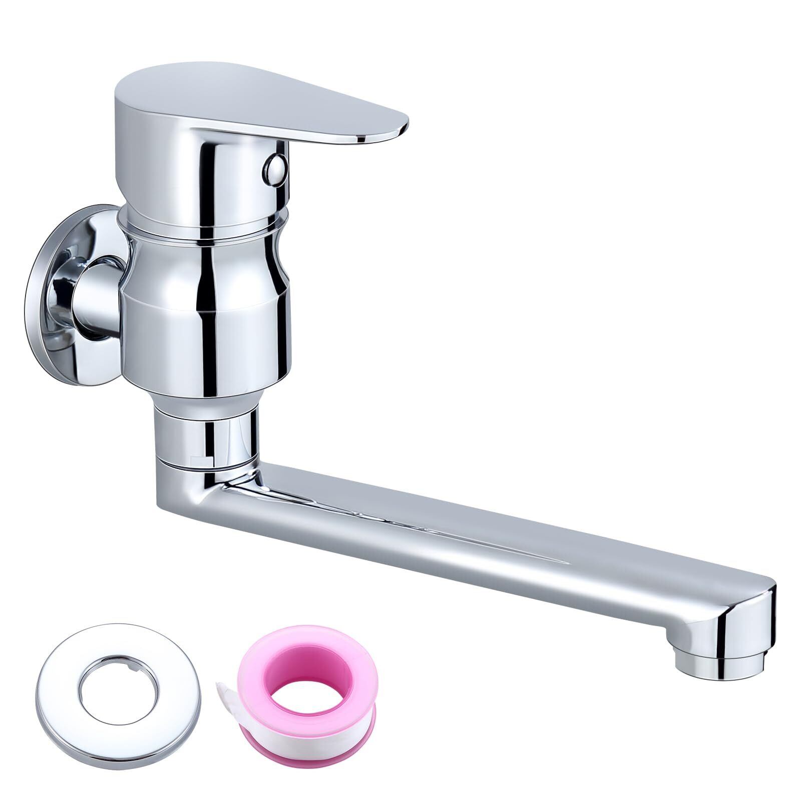 【新着商品】Jeonestan 壁付け 横型自在水栓 台所 1穴 蛇口 単水栓 シングルレバー操作 真鍮製 メッキ加工 防錆仕様 泡水流節水設計 吐水口360度回転 ワンホール取付穴径20mm 手洗いボウル/キッチン対応 (C:長18cm) | bobo
