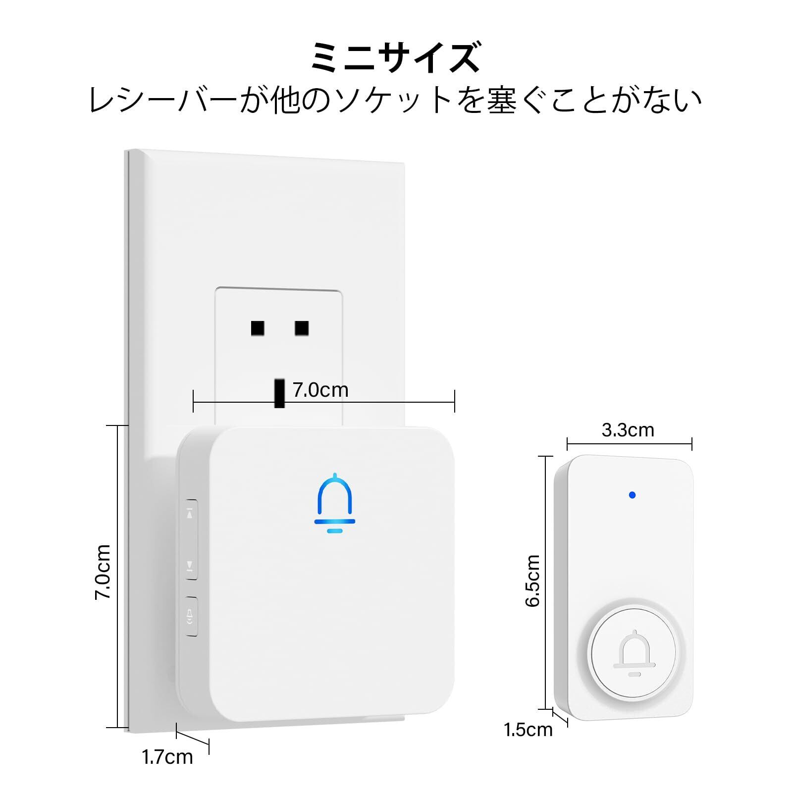 SECRUI ワイヤレスチャイム 玄関チャイム インターホン ワイヤレス 工事不要 電池式 防水ドアベル 呼び鈴 7色提示led 32曲 5段階音量調節 300M無線範囲-ホワイト