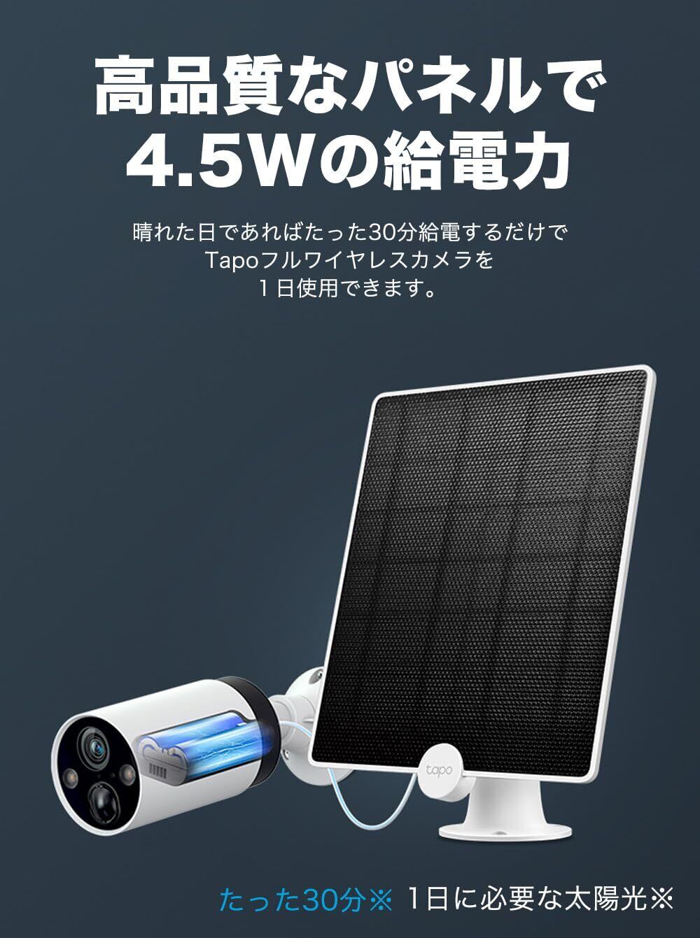 Tapoバッテリーカメラに最適 Tapo C425等バッテリー搭載のTapoカメラと連携することができるので、充電を気にせずより利便性の高い安定したセキュリティ対策を実現可能です。