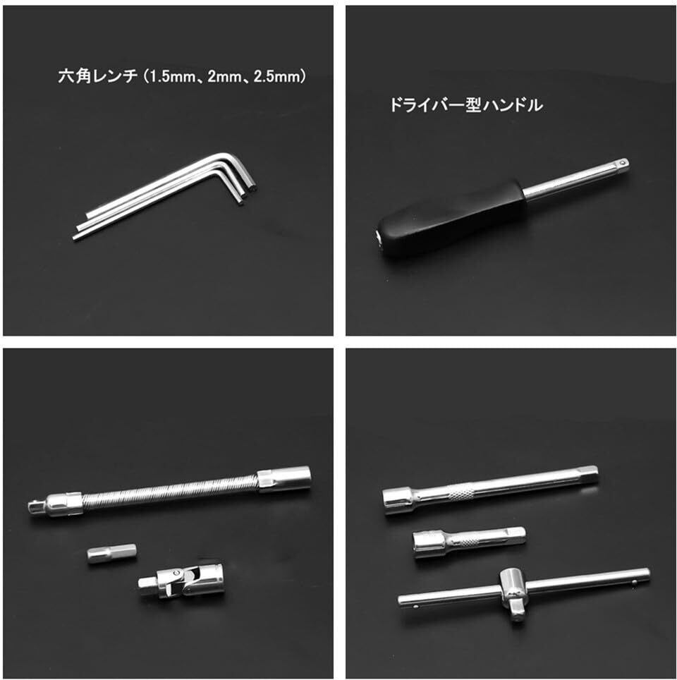 ソケットレンチ ラチェットレンチ 工具セット 差込角6.3㎜(1/4インチ) 46点 スパナ 自動車修理ツール ソケットレンチセット 車整備 点検 自転車修理 DIY用 便利