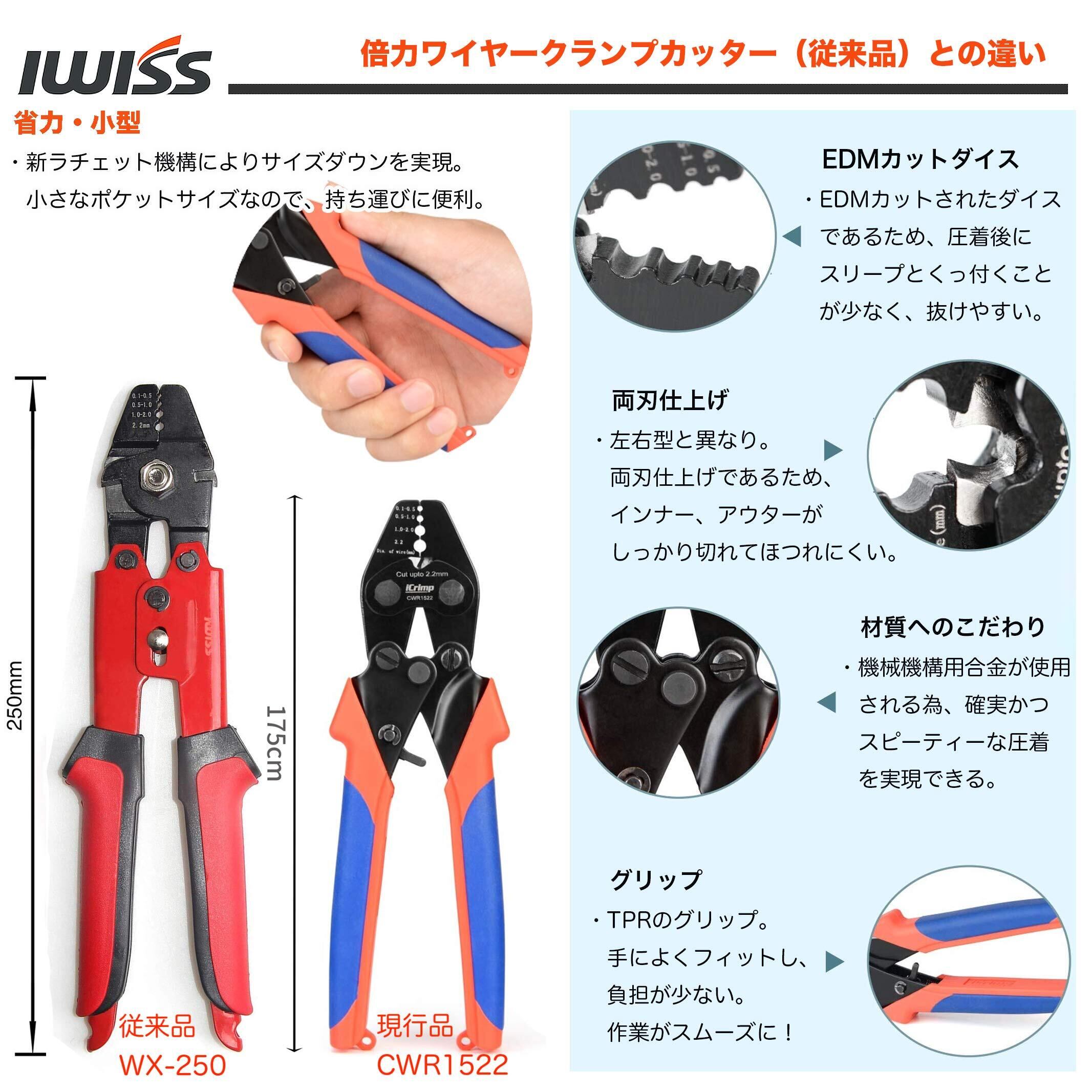 アイクリンプ(iCrimp) ラチェット式 ハンドプレッサー アルミスリーブ かしめ機 ワイヤークランプカッター 圧着 切断 1丁2役! φ0.1mm-φ2.2mm対応 CWR1522