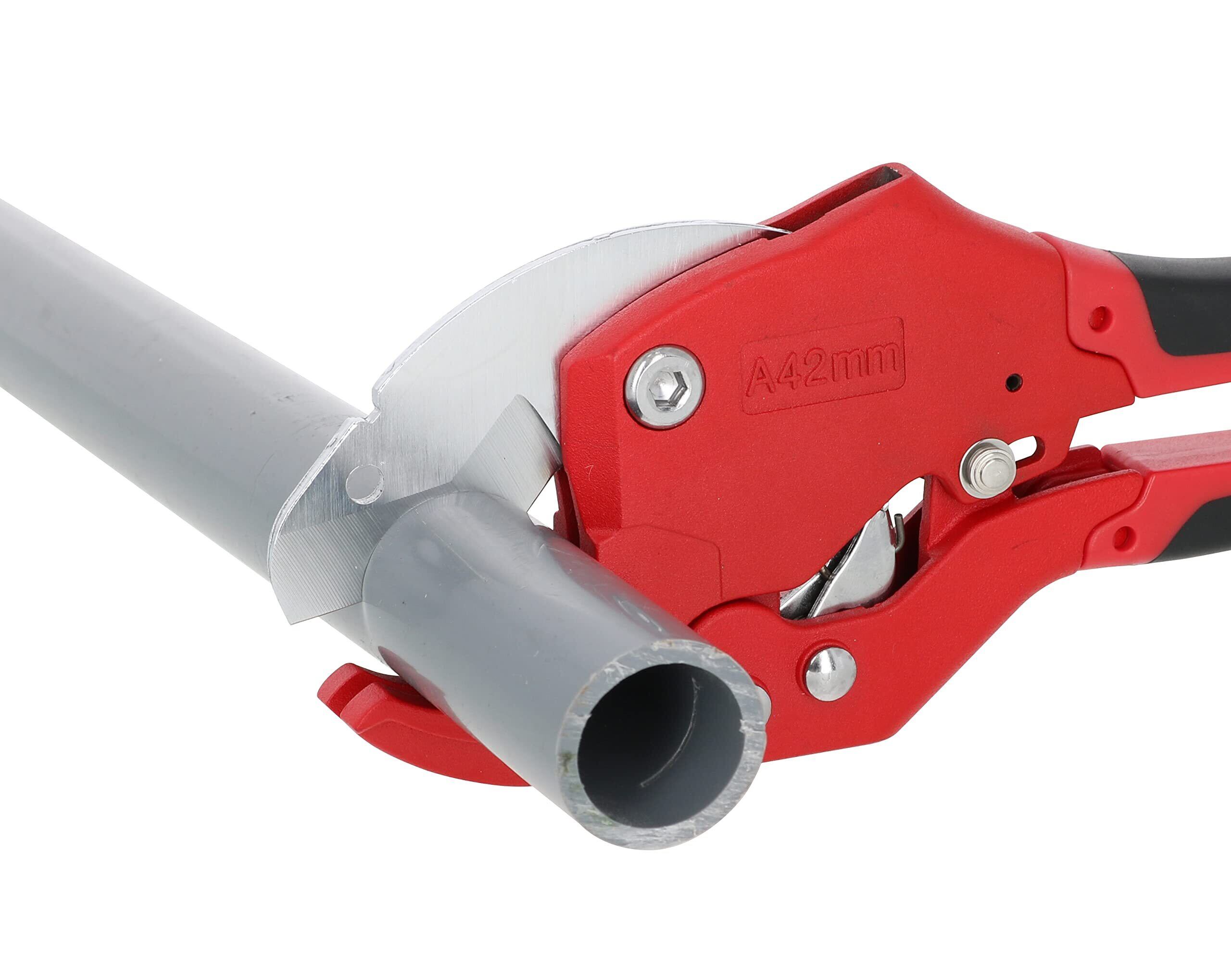 V型の角度付き刃で切り込みスムーズ、パイプが逃げにくい