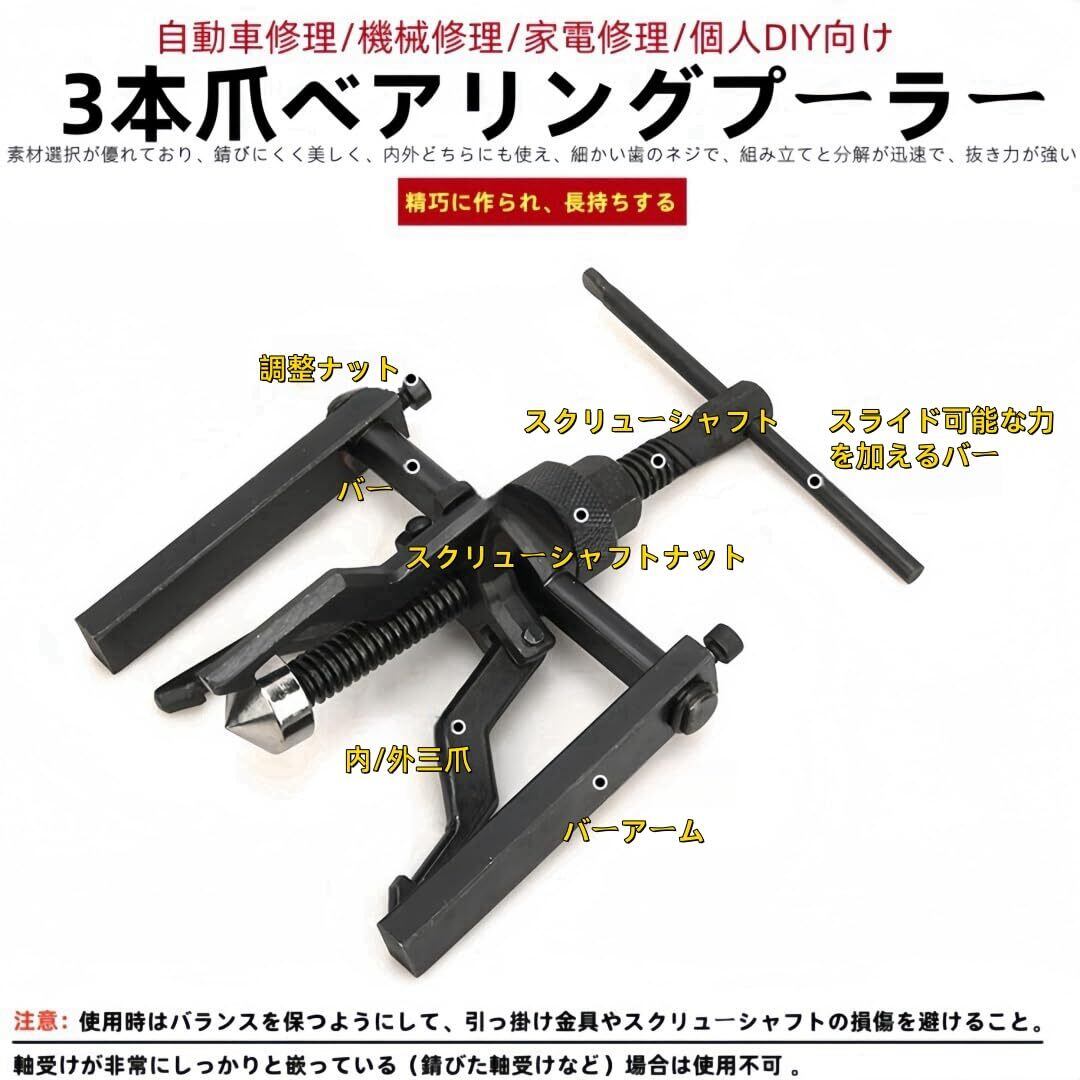 ベアリングプーラー3本爪 パイロット ベアリング プーラー 適応 サイズ 内径 14 ~ 38 mm DIY 整備 ツール ベアリングぷーらー