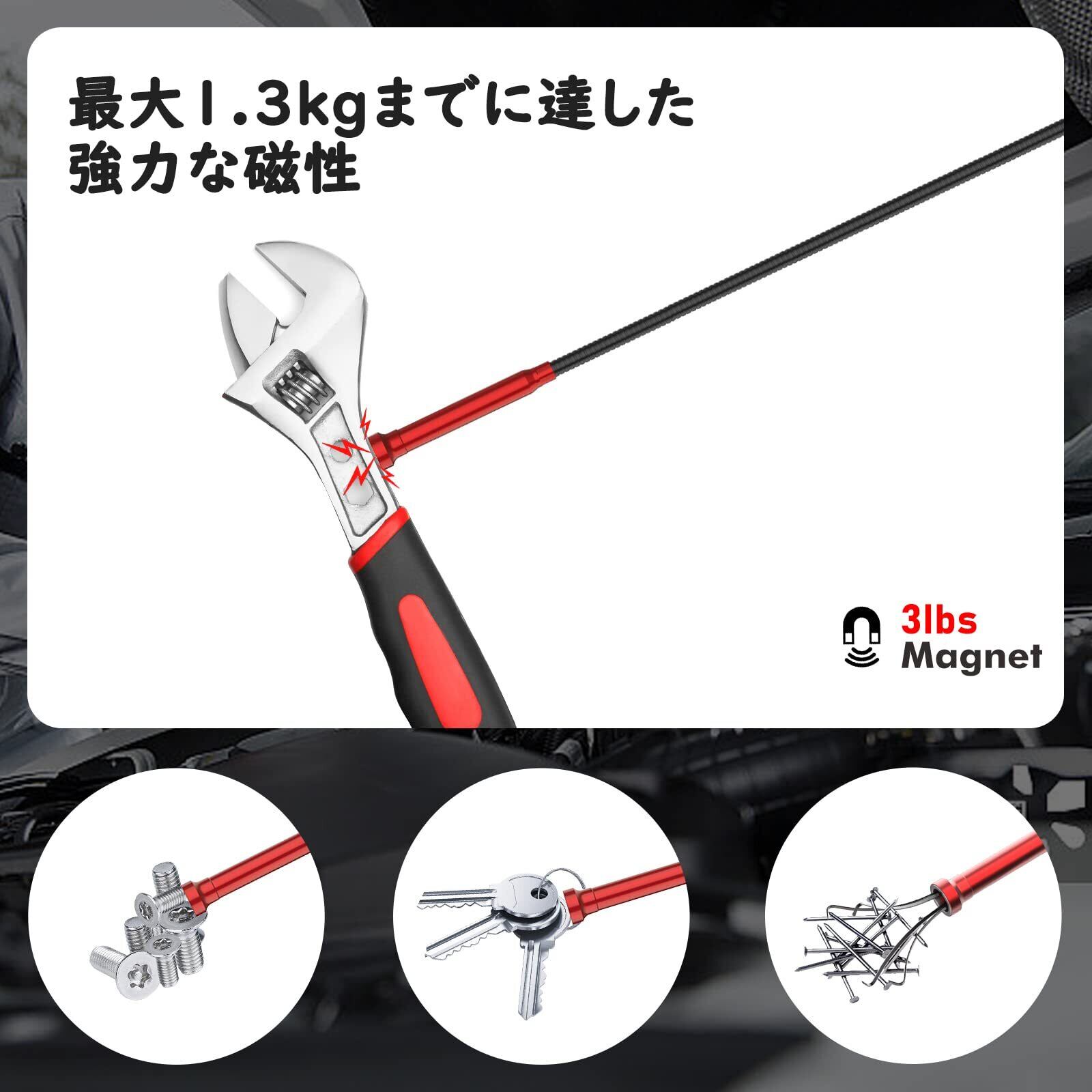 【2022最新】ピックアップツール Housolution マグネットピックアップ 72cm LEDライト先端に内蔵 鉄製 ピックアップ工具 マグネット4本爪 磁性爪 曲がれる ボタン電池式 マジックハンド フレキシブル 隙間 拾うツール 狭い所 トイレ トラック 車 Red | bobo