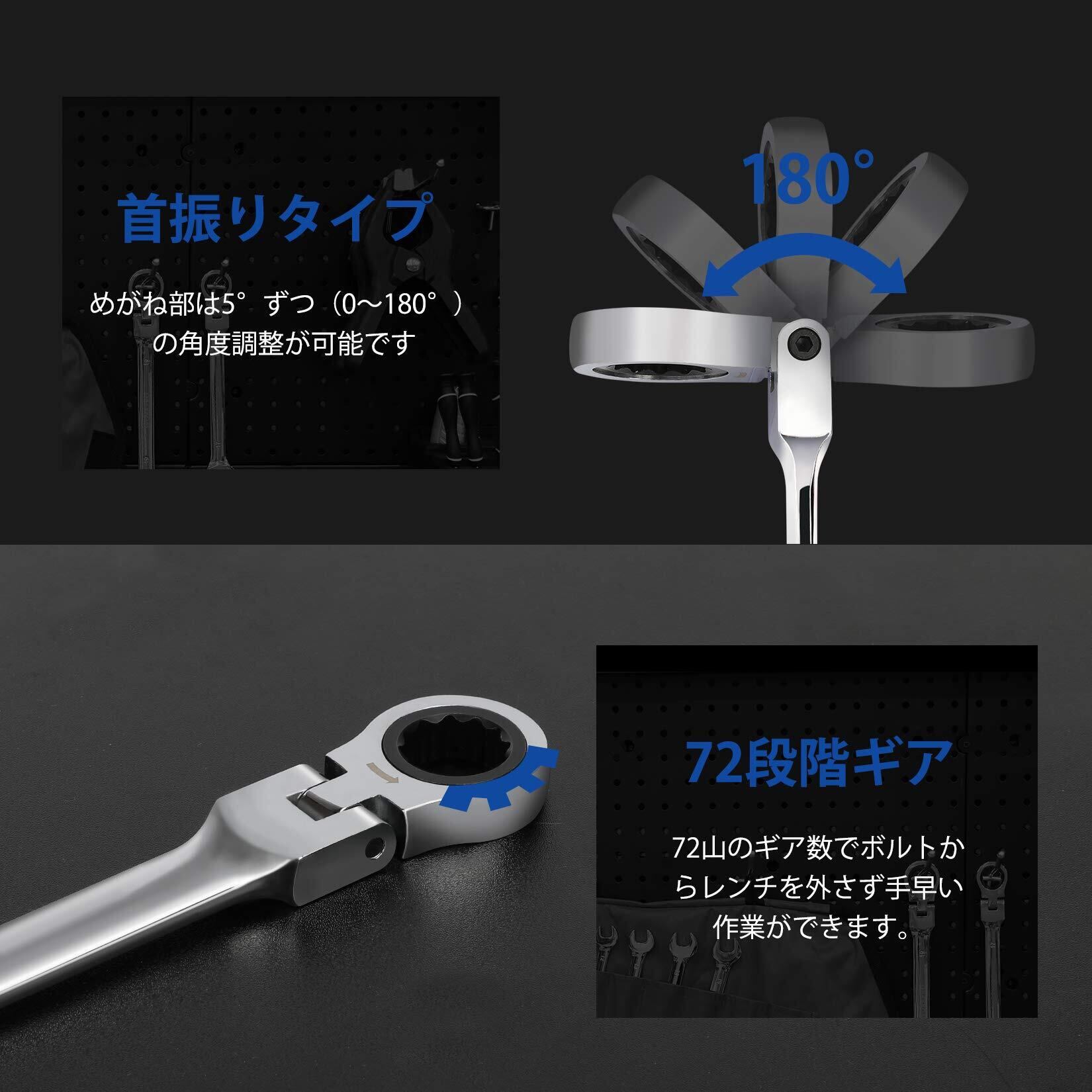 【在庫セール】WORKPRO フレックスラチェットレンチ コンビネーションレンチ 首振り 8~19mm 72ギア 9本組 スパナ 組み立て 自動車修理 メンテナンス いじり DIY用 収納バッグ付 | bobo