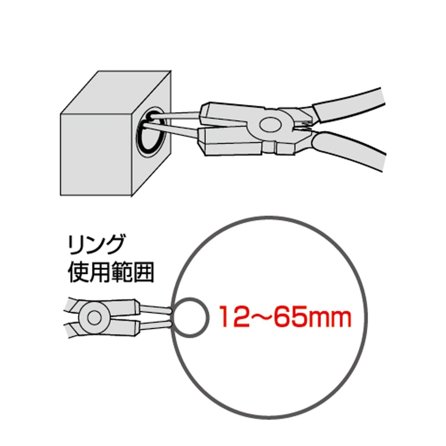 フジ矢 スナップリングプライヤー (握ると先端が閉じる穴用・直爪)先端直径φ2.0mm リング範囲12-65mm 替え爪式 185mm FCS-185 オレンジ