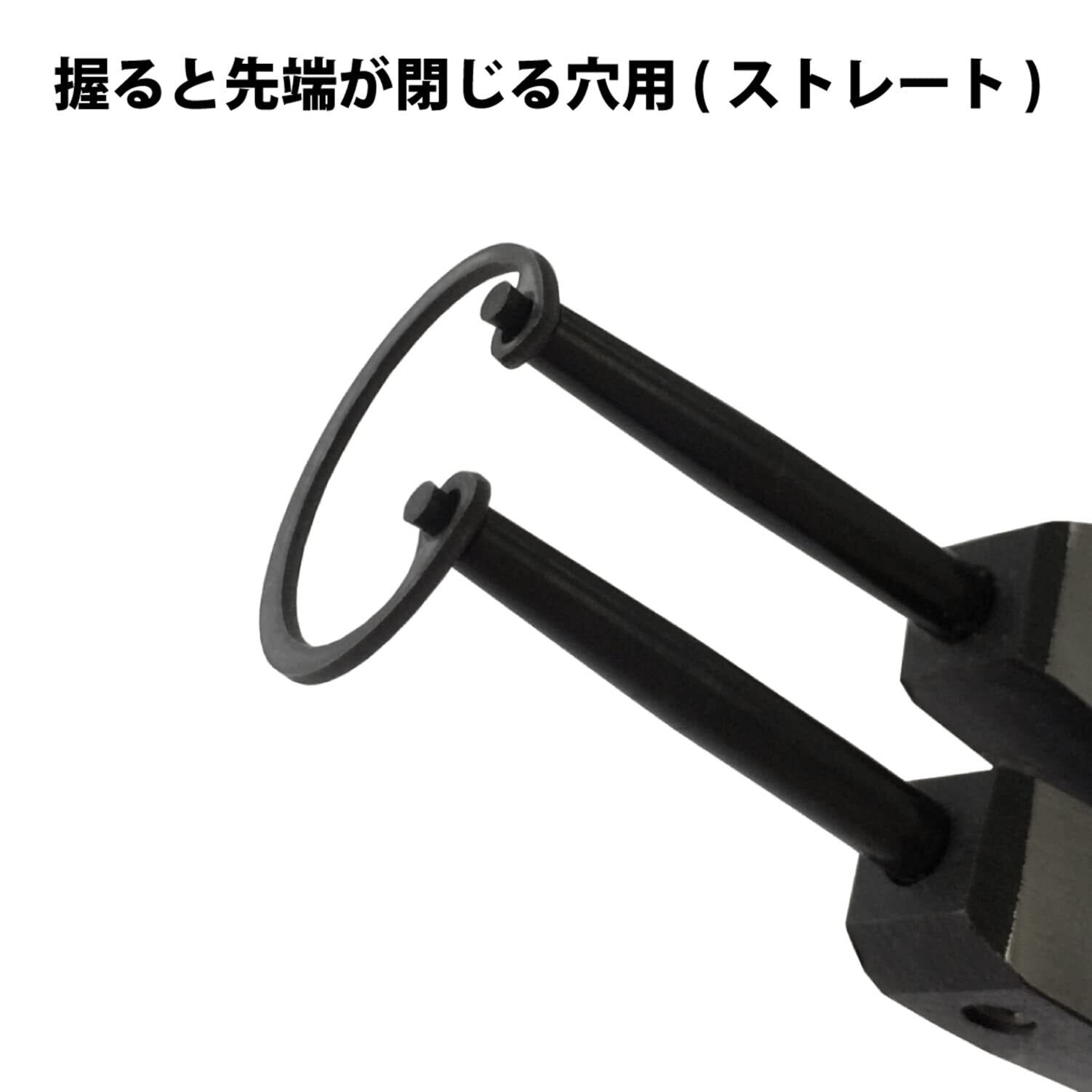 爪部の先端は、逆テーパー状に加工してあるので、スナップリングを確実にキャッチし、すべり落ちることはありません