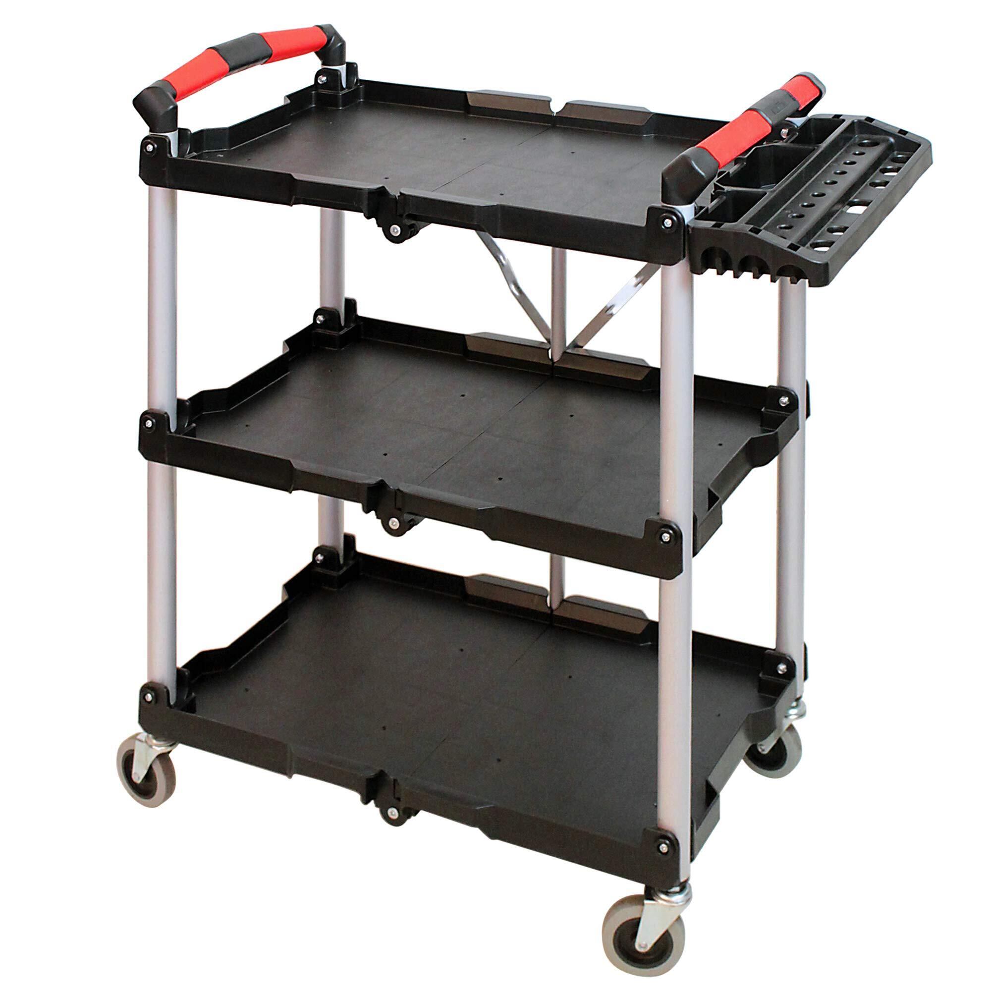 樹脂製の折り畳み式ツールカートに作業効率が上がる収納トレーも付いています。